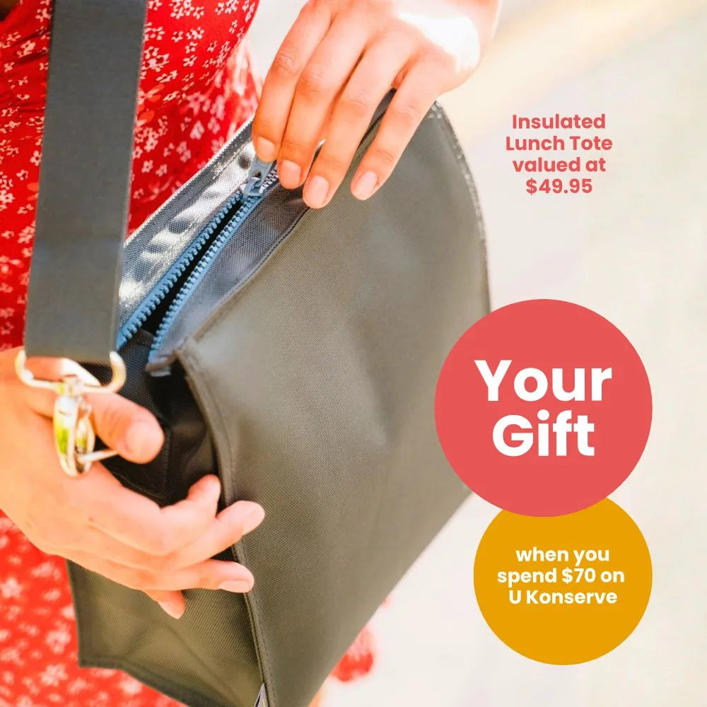 YOUR GIFT Lunch Tote (valued at $49.95) when your spend $70 on U KonserveShop U Konserve
