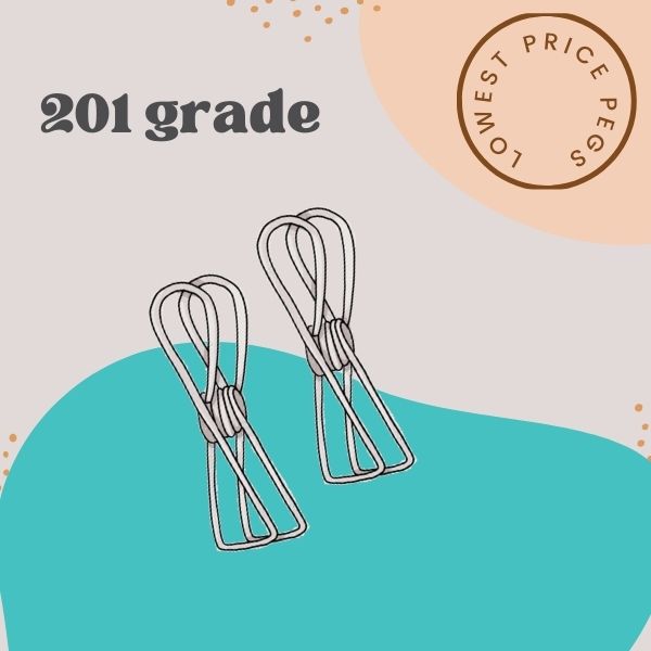 201 is the stainless steel with least rust resistance. This grade is still great quality, but is only suitable if you bring your pegs inside, and don't live within 10kms of the ocean. Ideal for many uses inside the home too.