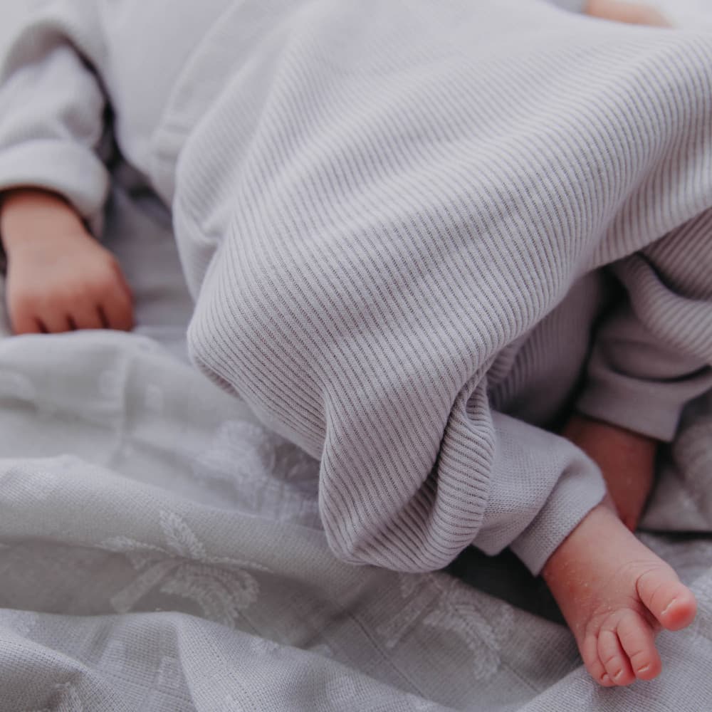 Cosy comfy and soft for bedtime routines. Pairs well with the matching ribbed grey sleep suit. A popular gift choice