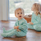 Pure, soft and healthy sleepwear for your baby. This sleepsuit features 100% GOTS certified organic cotton and a whale print on a soft sage green fabric. The long sleeve and pant-leg, with enclosed feet, is perfect for cooler months and available in sizes for babies 0-24 months. Designed on the Sunshine Coast, Australia and made though an ethical supply chain in a GOTS-Certified Mill in India.