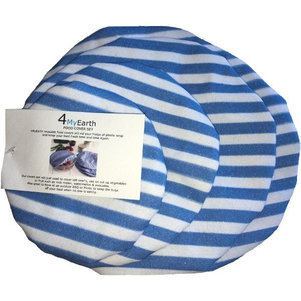 4MyEarth Vegan friendly Cotton Food Covers are perfect for leftovers, BBQs and cut fruit and veggies. Not just for leftovers, use on cut up vegetables or fruit such as rockmelon, watermelon etc. Great for the end of a cheese block too! The set contains 4 pieces : Mini - 17cm,Small - 22cm, Medium - 26cm and Large - 30cm Diameter