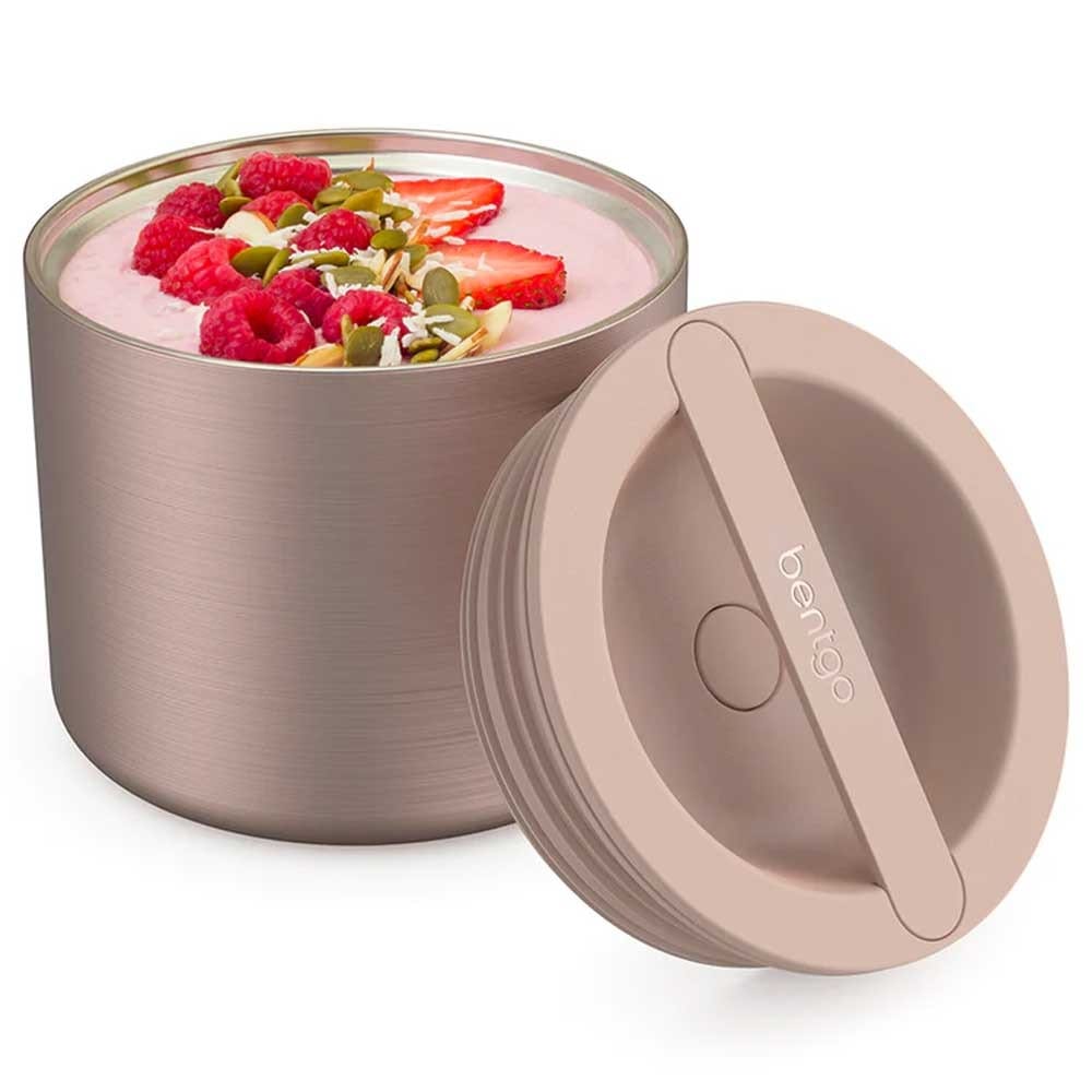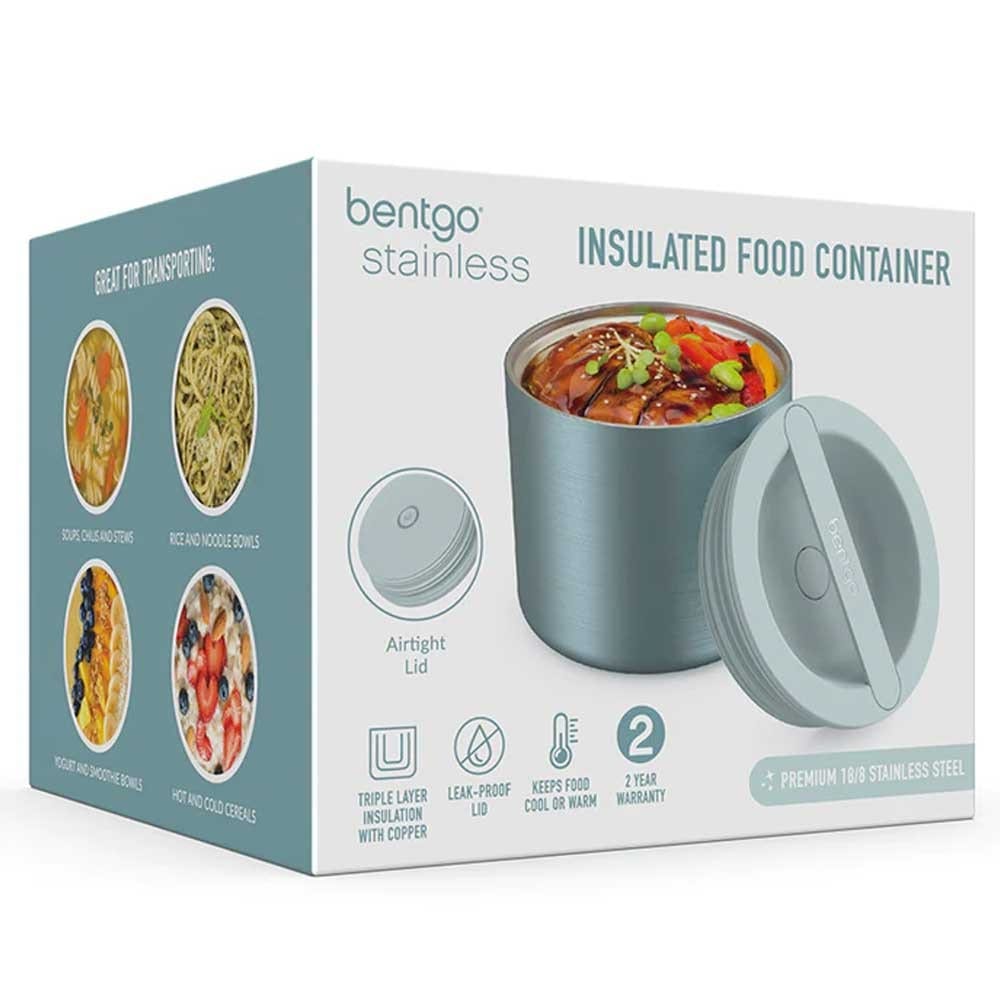 The Bentgo stainless steel insulated container makes taking meals on the go easy! Keeping food cool or warm this insulated food jar features an airtight and leakproof lid and wide-mouth design. 560ml capacity.