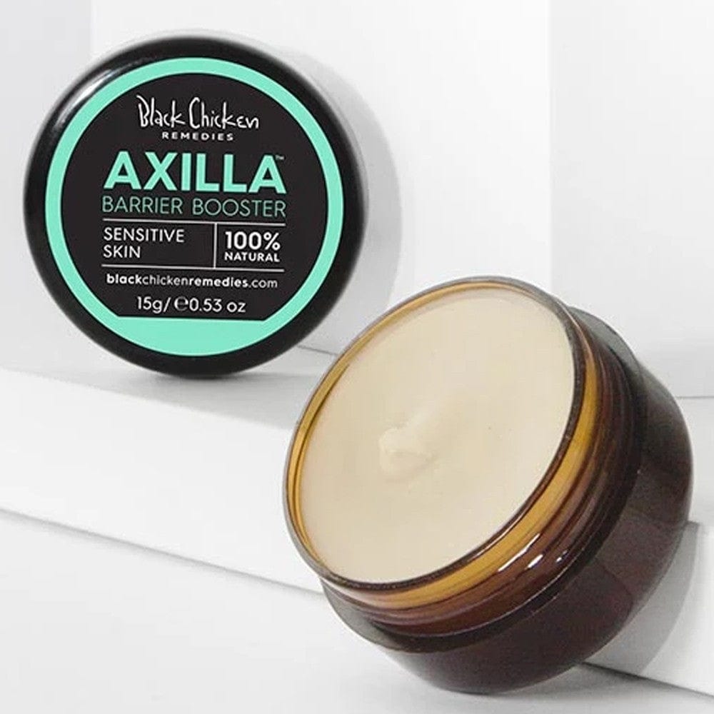 Black Chicken Deodorant Paste Axilla - Sensitive Skin/Barrier Booster Mini 15g. A natural deodorant that has been specially formulated for sensitive skin. Bicarb free and enhanced with borage seed oil and magnesium hydroxide, it's filled with skin nourishing ingredients, is easy to apply and is invisible after application. Made in Australia. Packaged in a reusable travel/tester tub. 15g.
