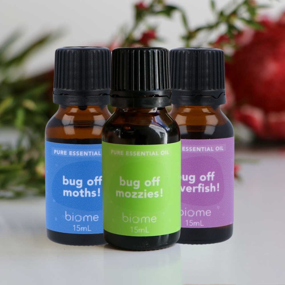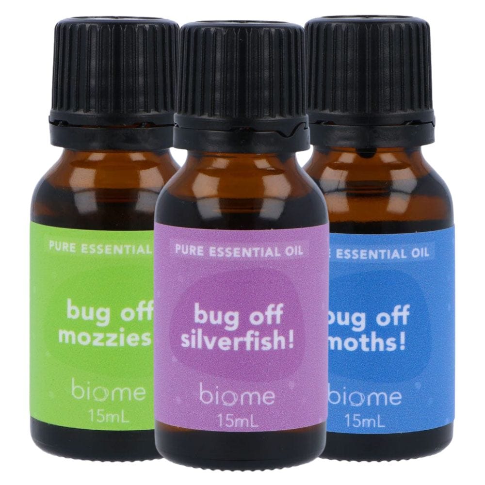 Biome Essential Oil Blend 15ml - Bug Off Silverfish, Biome Essential Oil Blend 15ml - Bug Off Mozzies, Biome Essential Oil Blend 15ml - Bug Off Moths