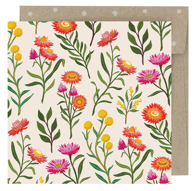 The Earth Greetings Mini Card - Everlasting Love features a colourful array of flowers. Printed on 100% recycled carbon-neutral card using vegetable based inks. Blank inside — perfect for adding your own personal message.
