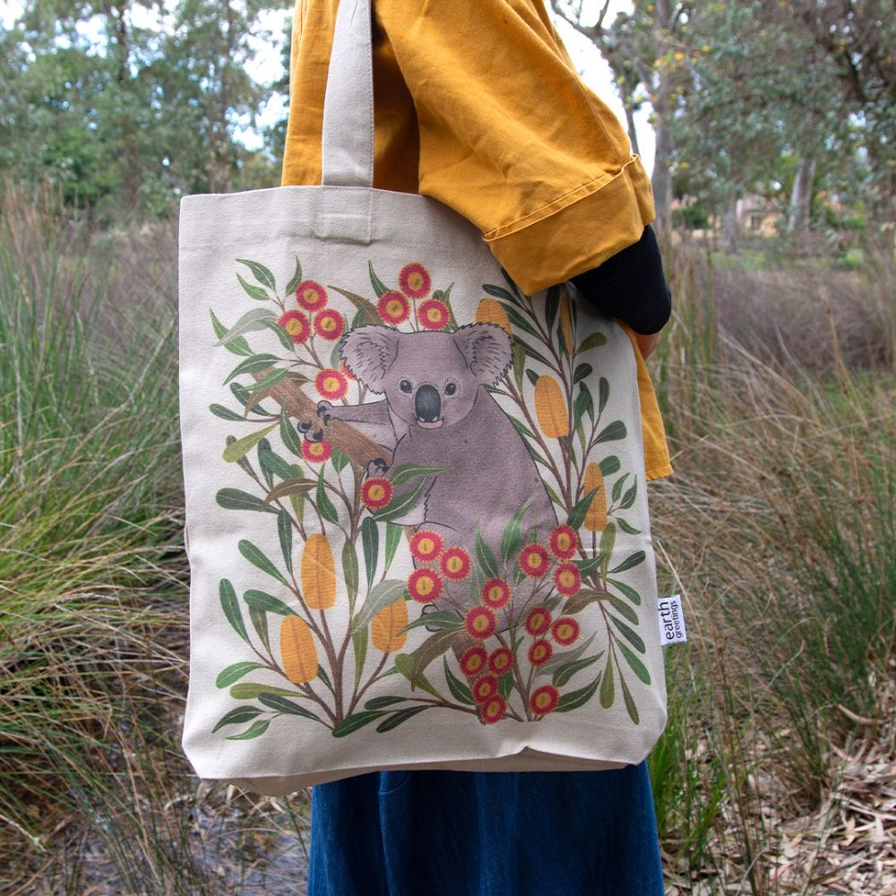 Earth Greetings Organic Cotton Tote Bag with Inner Pocket - Koala Country