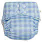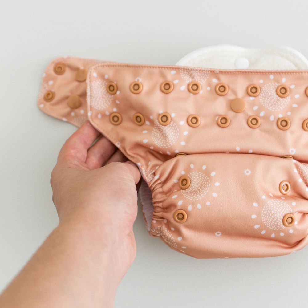Air dry nappies until completely dry in the shade. Hang the crotch of the nappies over the line so the weight of the nappy is evenly distributed. Never hang wet nappies by one side only as this will slacken the elastic. Make sure nappy shells and inserts are completely dry before storing.
