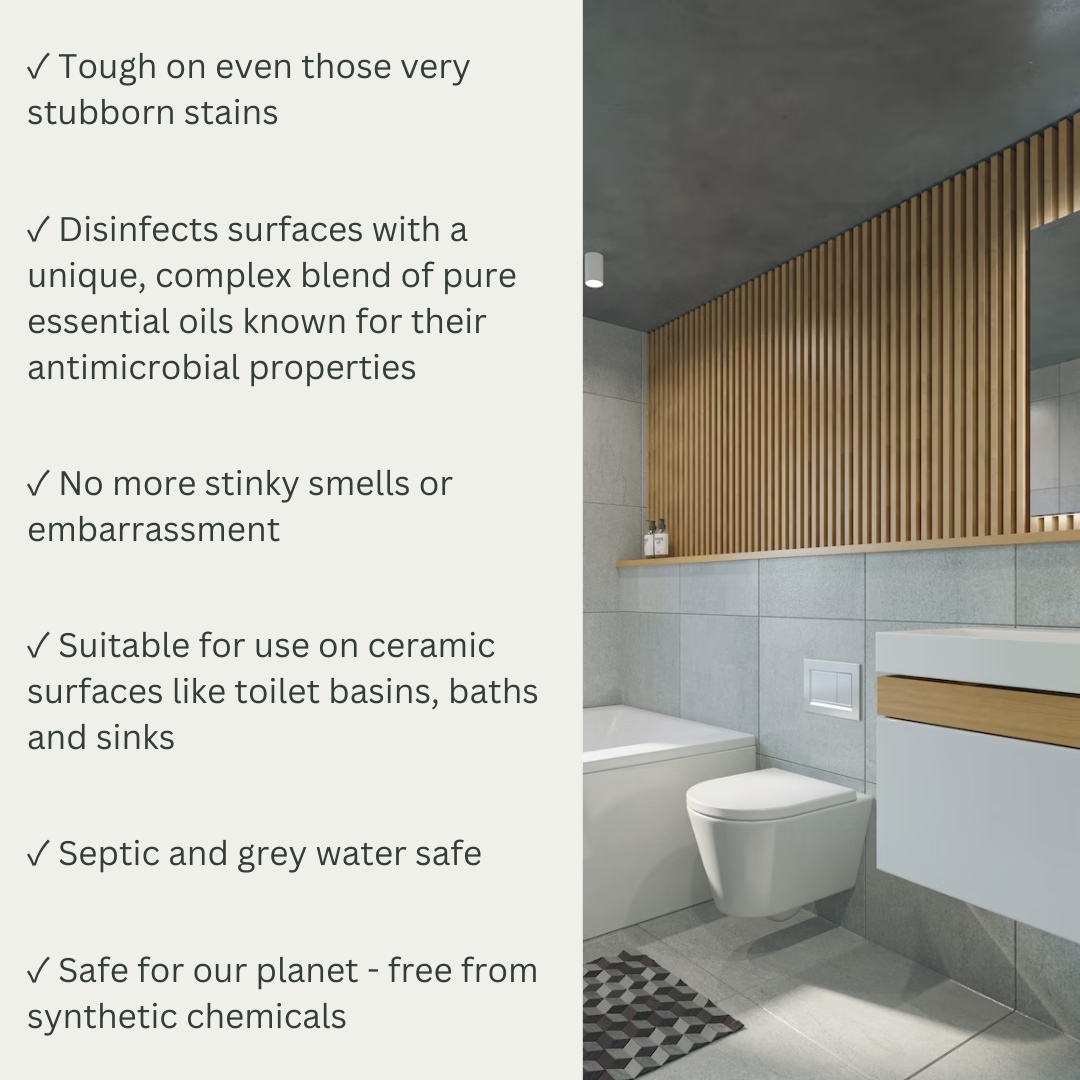 Give your bathroom the perfect eco-friendly deep clean with this Toilet Cleaner Spray by Euclove. Made from all natural ingredients, its designed to clean, disinfect and to remove odours and stains. It is grey water and specific safe and certified vegan and cruelty free. Child and Pet safe meaning its a great choice for every household.