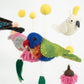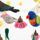 Featuring a rainbow lorikeet, galah, kookaburra and cockatoo, with gum leaves and pom-poms