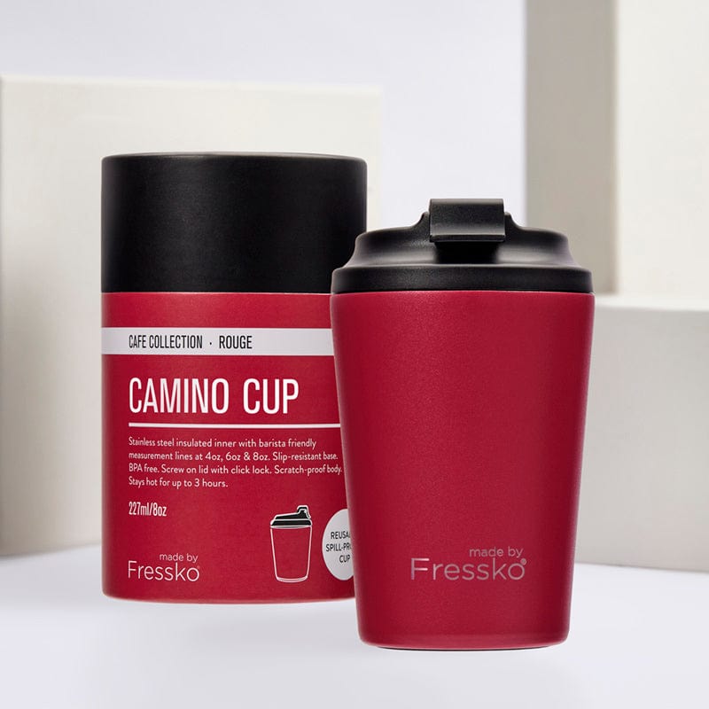 Meet the Camino reusable cup - where style meets sustainability! This chemical-free, lightweight, insulated stainless steel reusable coffee cup is the new and improved version of the classic takeaway cafe cup. Insulated to keep your drink hot or cold. BPA free, scratch resistant and spill proof. Choose from multiple colour options.