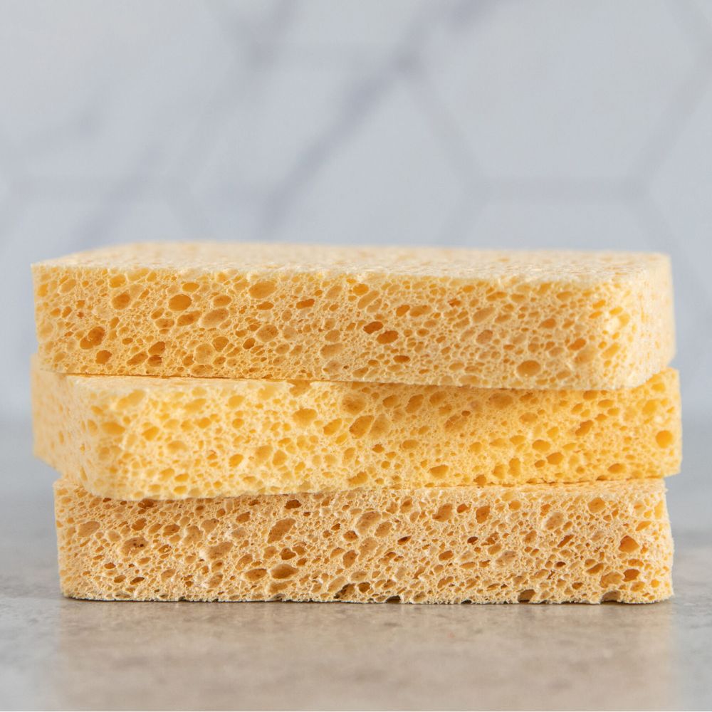 Clean smooth surfaces and your dishes with ease with this zero waste Cellulose Sponge Dish & Cleaning Sponge. It is the perfect addition to your eco-friendly kitchen. Made from 100% plant based materials, this sponge is also biodegradable and home compostable. Comes in a pack of 3.