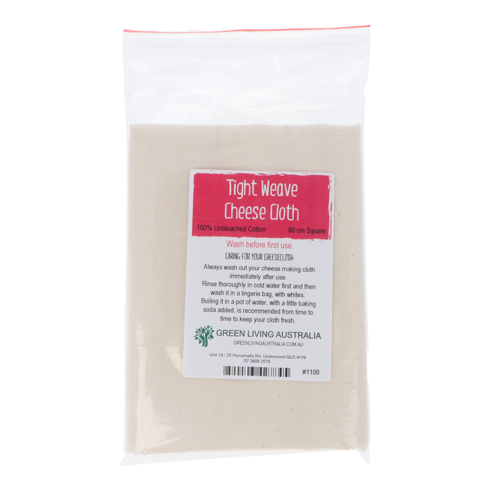 Green living cotton lawn cheese cloth - tight weave 90cm x 90cm. Excellent quality 100% cotton lawn cheese cloth with a tight weave for making soft cheeses. Washable and reusable. 90cm x 90cm square.
