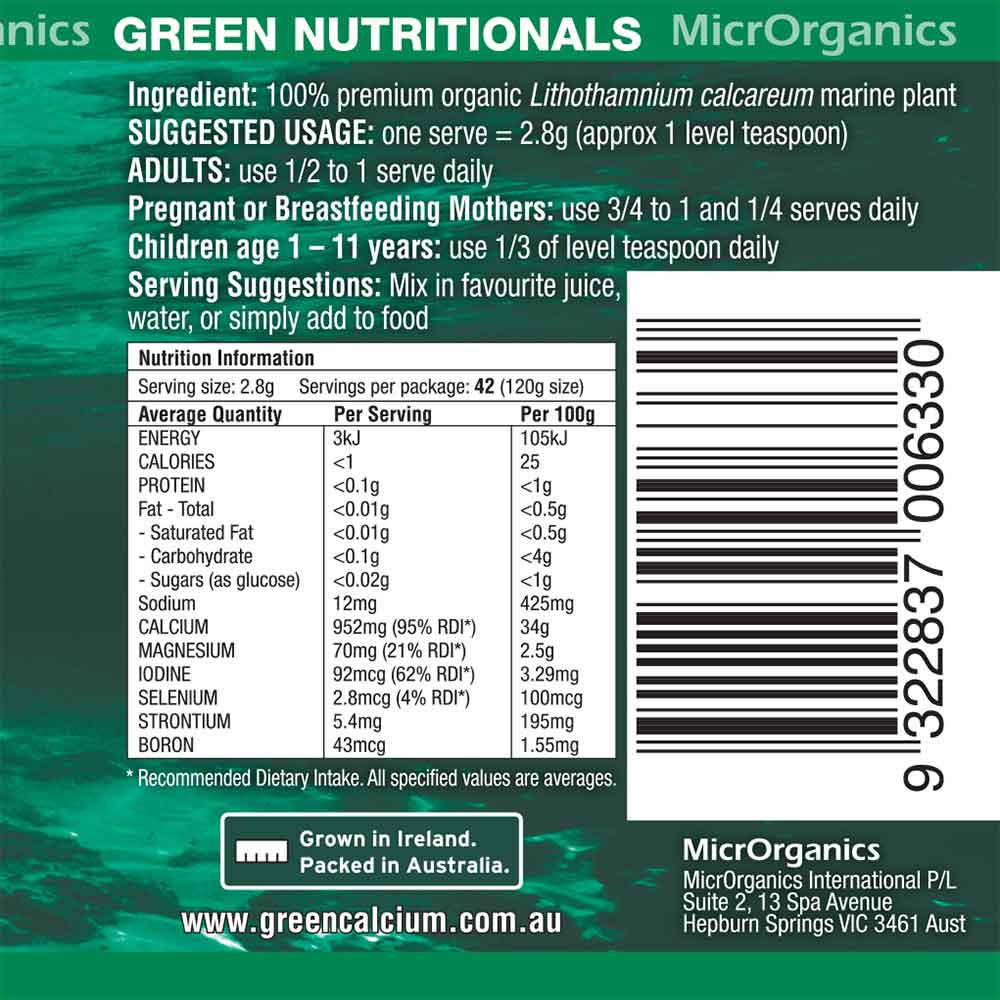 A unique wholefood source of natural calcium, naturally rich in natural rich in elemental calcium, magnesium and 72 other trace minerals crucial for optimum calcium absorption and bone health.