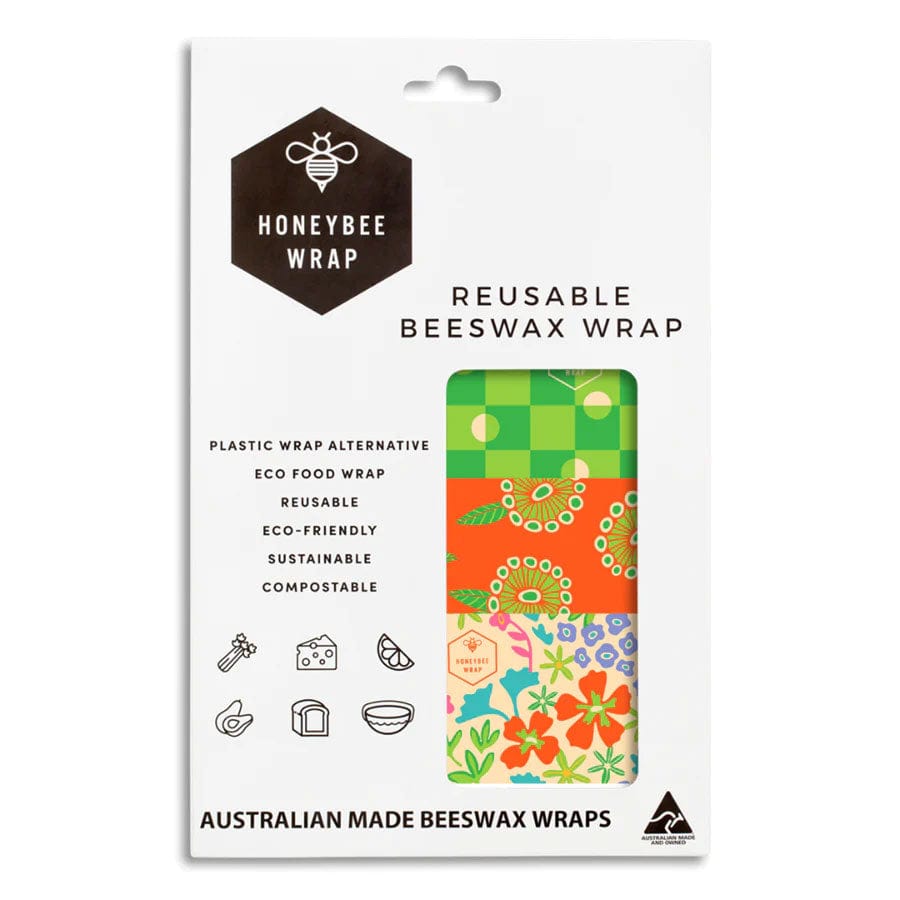 Honeybee beeswax wraps are made with 100% organic cotton infused with a special blend of beeswax and oils to create a flexible, slightly sticky and naturally antibacterial wrap for storing and packing food.