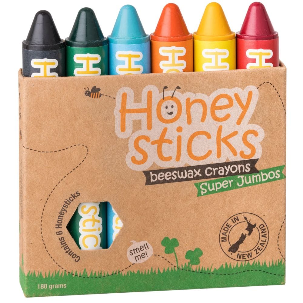 Honeysticks Crayons Longs. Honeysticks Crayons are handmade from 100% pure New Zealand beeswax and contain no paraffins or toxic ingredients. 6 long jumbo crayons. 180 grams.