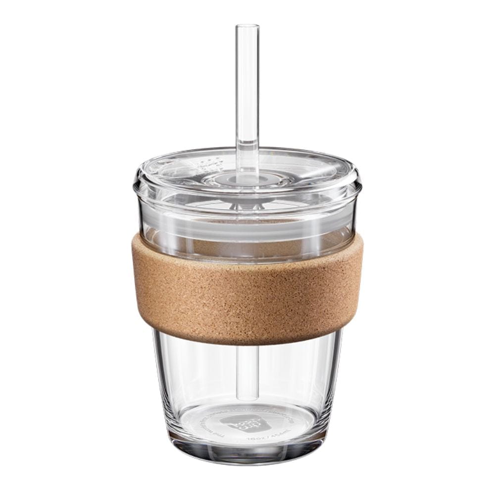 Enjoy your beverage in this Glass Cork Cold Cup by KeepCup. Perfect for summer sipping, this cup features a straw lid and clear glass design. A great gift idea for any lover of iced drinks. Choose between two sizes.