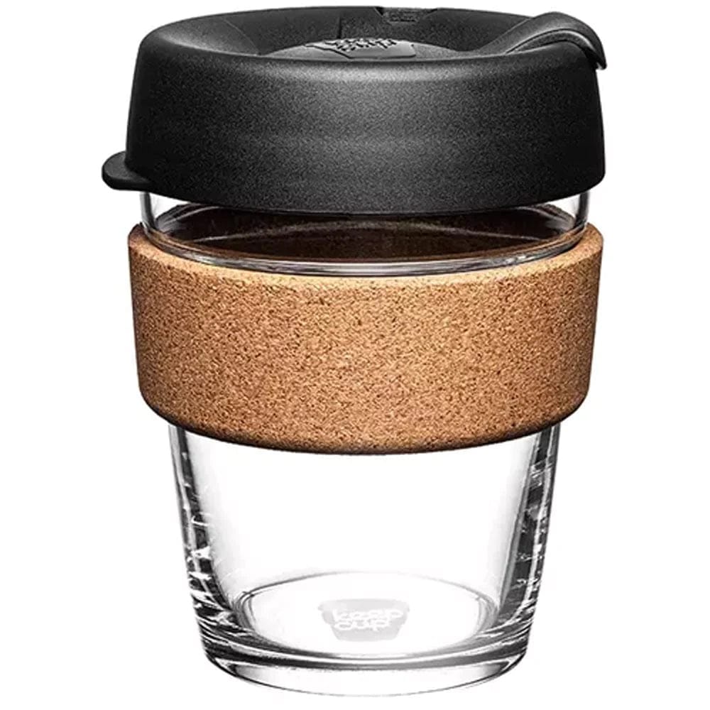 Keep Cup Brew limited edition is a tempered glass reusable coffee cup with a cork band that is beautiful to hold, antibacterial and insulates your hand from heat. Perfect for the coffee purist or lovers of fine tea to enjoy the cafe experience 'to go'. 340ml (12oz).