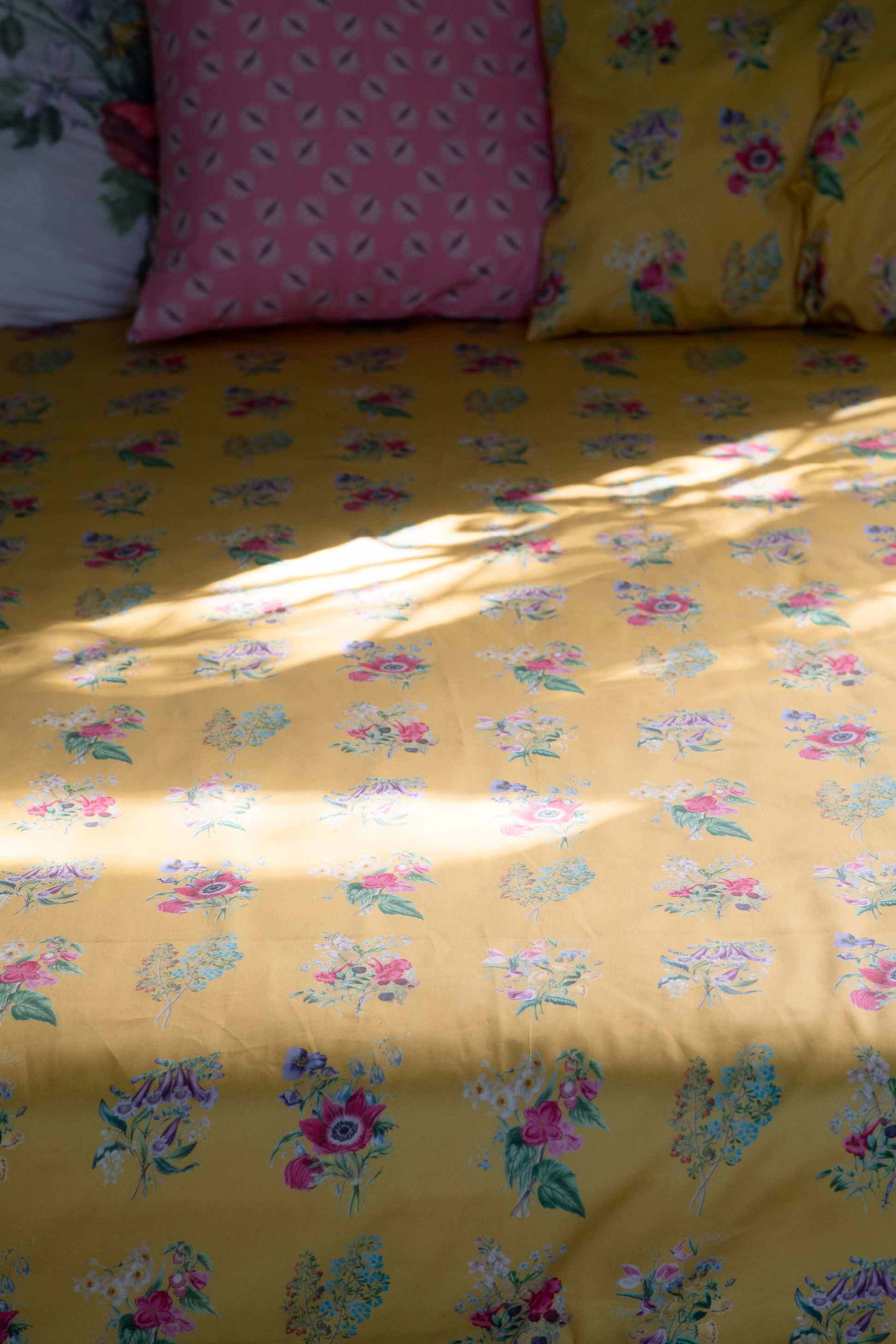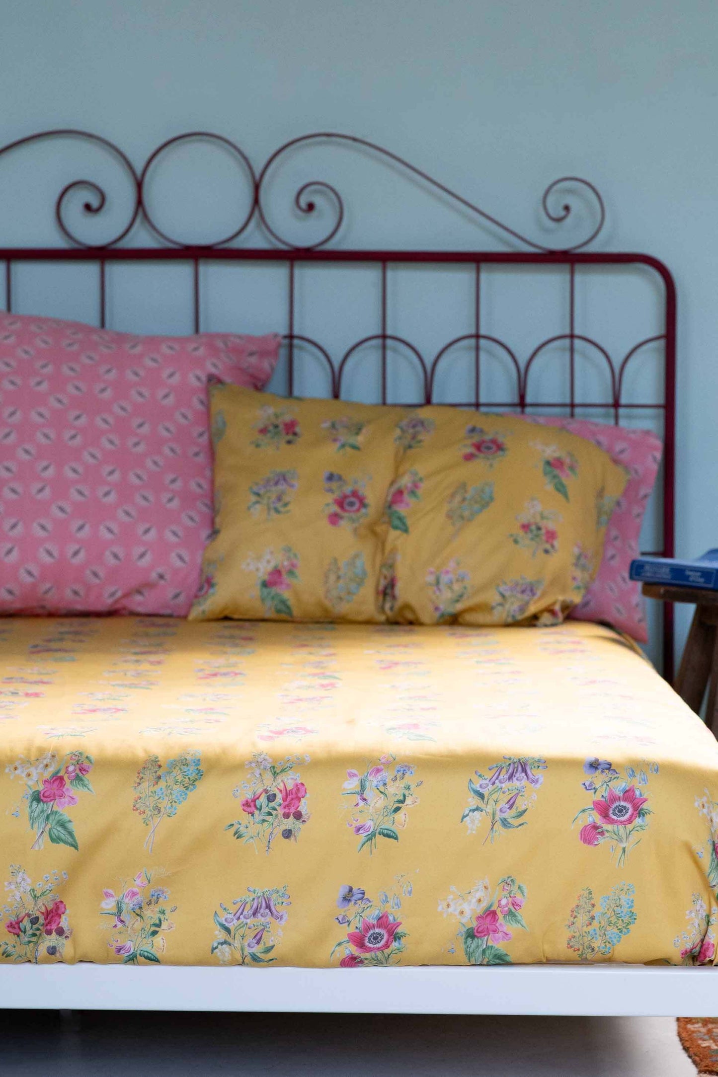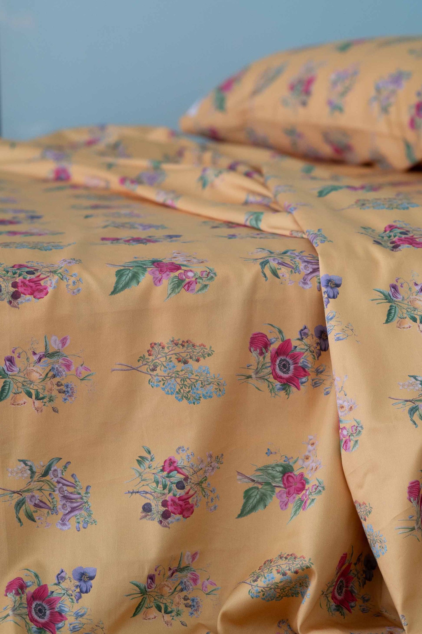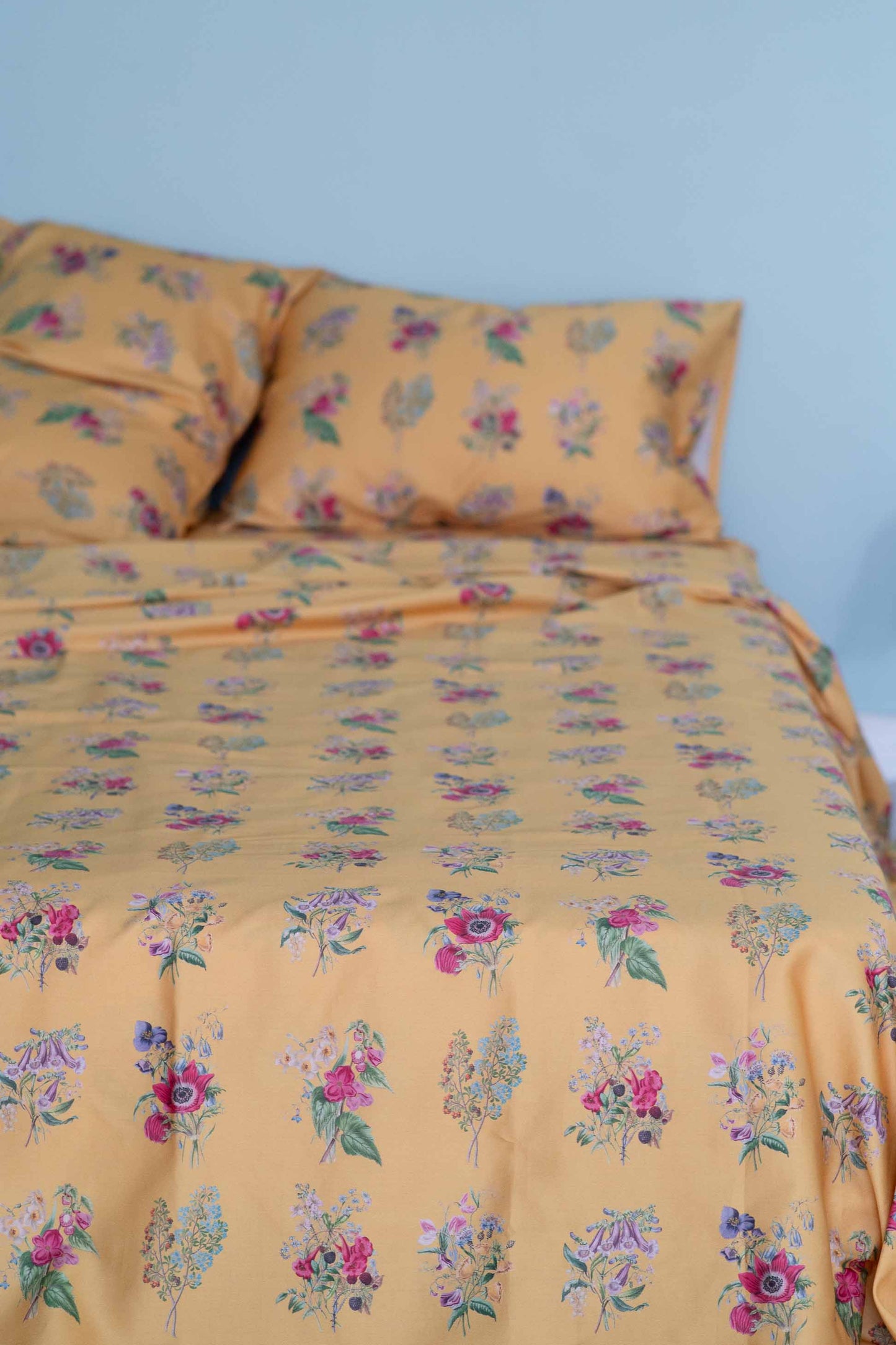 Introducing this sweet new Organic Cotton Sheet Set by Lazybones. Featuring a selection of antique botanic illustrations on a mustard yellow background