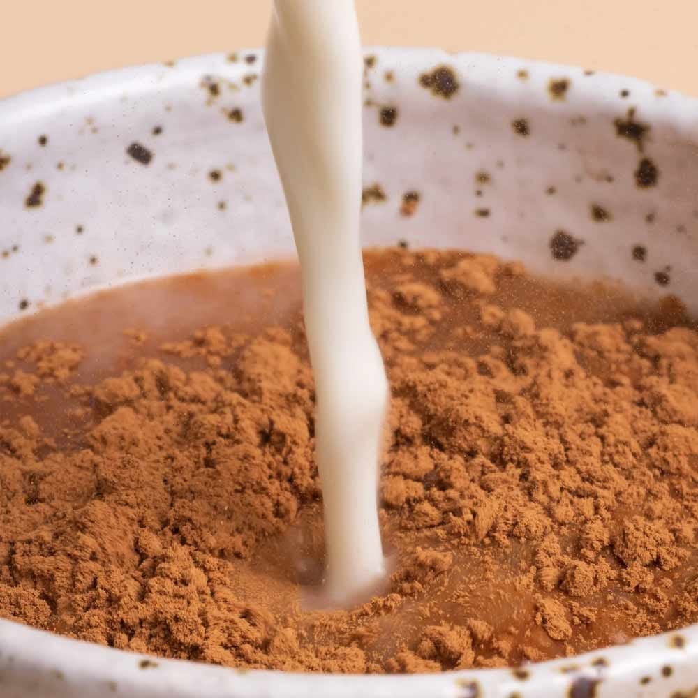 Ganoderma lucidum ext. dry conc. 300mg, Equiv. Ganoderma lucidum (Reiishi mushroom) fruiting body dry 6g, Withania somnifera ext. dry conc. 150mg Equiv. Withania somnifera (Ashwagandha) root dry 3g, Cocoa powder 7.2g, Theobroma cacao (cacao) seed powder 2.4g, Equiv. Caffeine 4.8mg Siraitia grosvenori ext. dry conc. 12mg, Equiv. Siraitia grosvenori fruit dry 960mg, Panax quinquefolius (Ginseng) root ext. dry conc. 50.04 mg, Equiv. Panax quinquefolius root dry 500mg Excipent ingredients: carob pod powder, glycine.