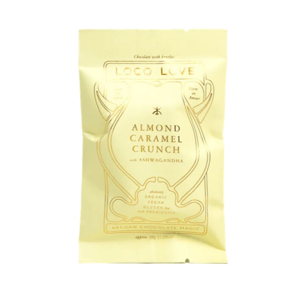 Get the most of your chocolate experience with this Almond Caramel Crunch by Loco Love. Enjoy the yummy balance of sweet and salty almonds and caramel wrapped in dark peruvian cacao and blended with superfood, Ashwagandha. A chocolate that will never last long in your house. Single, 30g
