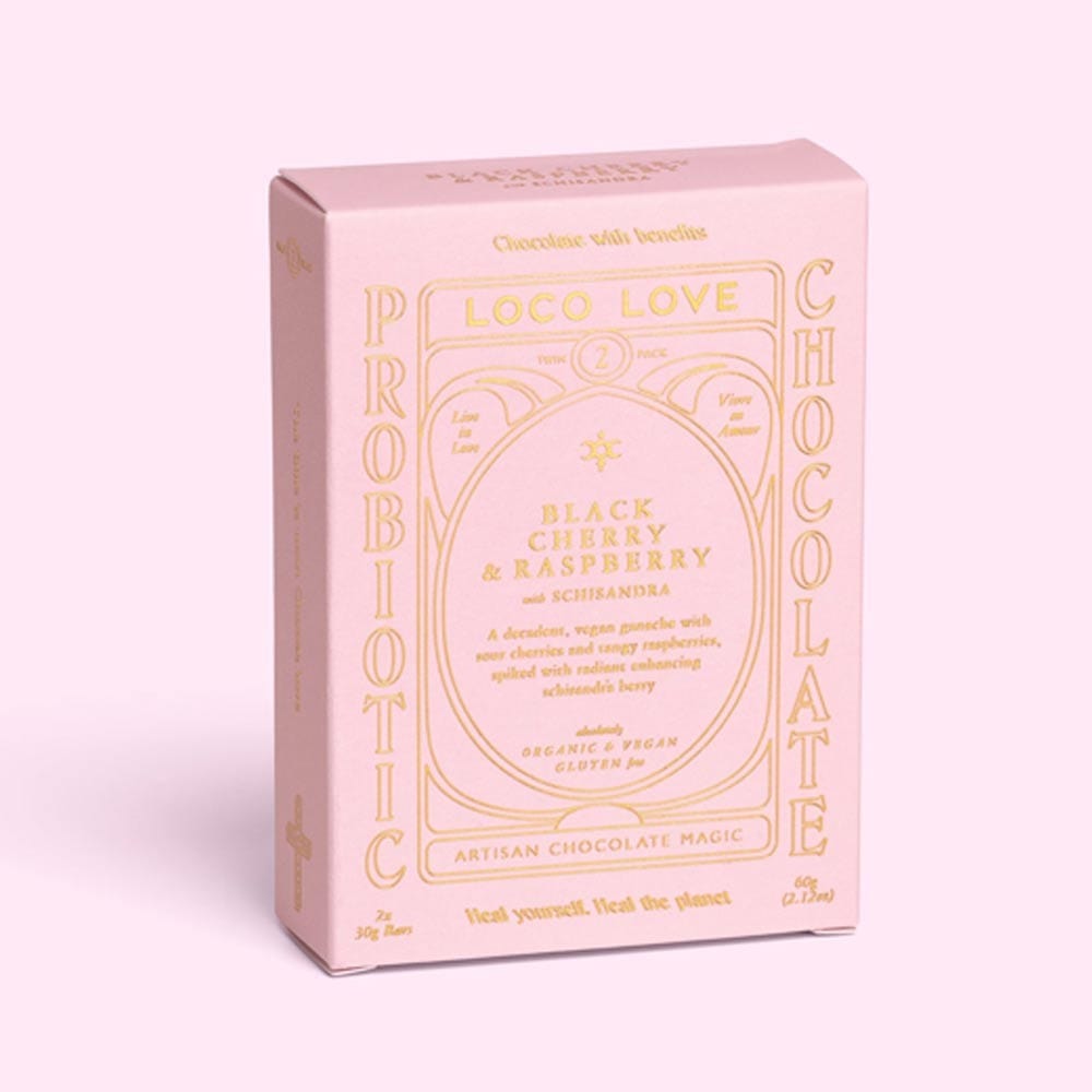 Move over, Cherry Ripe! There's a new choc on the block and she's laced with more than a hint of goodness. This Loco Love Twin Pack is infused with gut-loving probiotics, healing herbs and superfoods to nourish you while enjoying. The ultimate combination, these sweet and sour black cherries and freeze dried raspberries are guaranteed to hit your sweet spot.