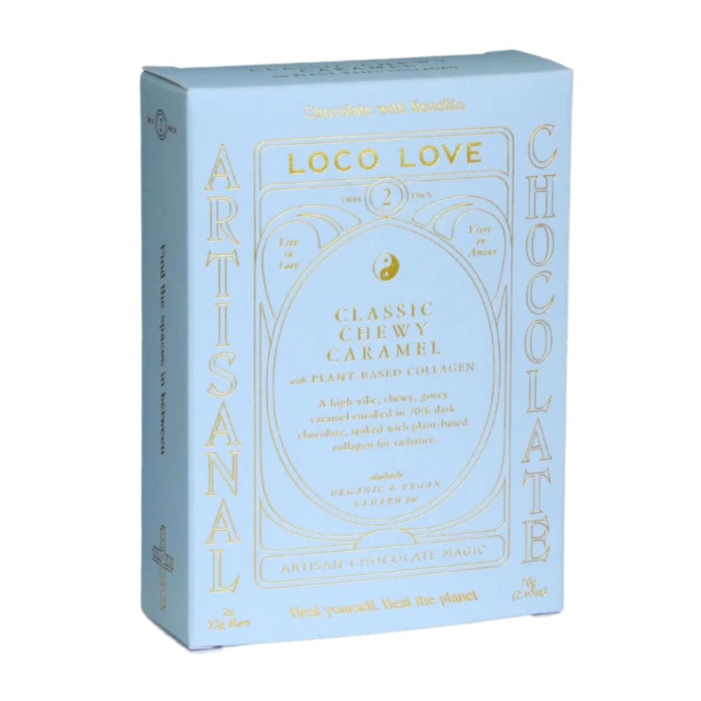 This Loco Love Twin Pack in Classic Chewy Caramel won't last long. An irresistibly gooey treat that deserves to be eaten instantly. Featuring plant-based collagen to support your skins natural glow and organic cacao. Yum, yum yum! Twin Pack - 60 grams.