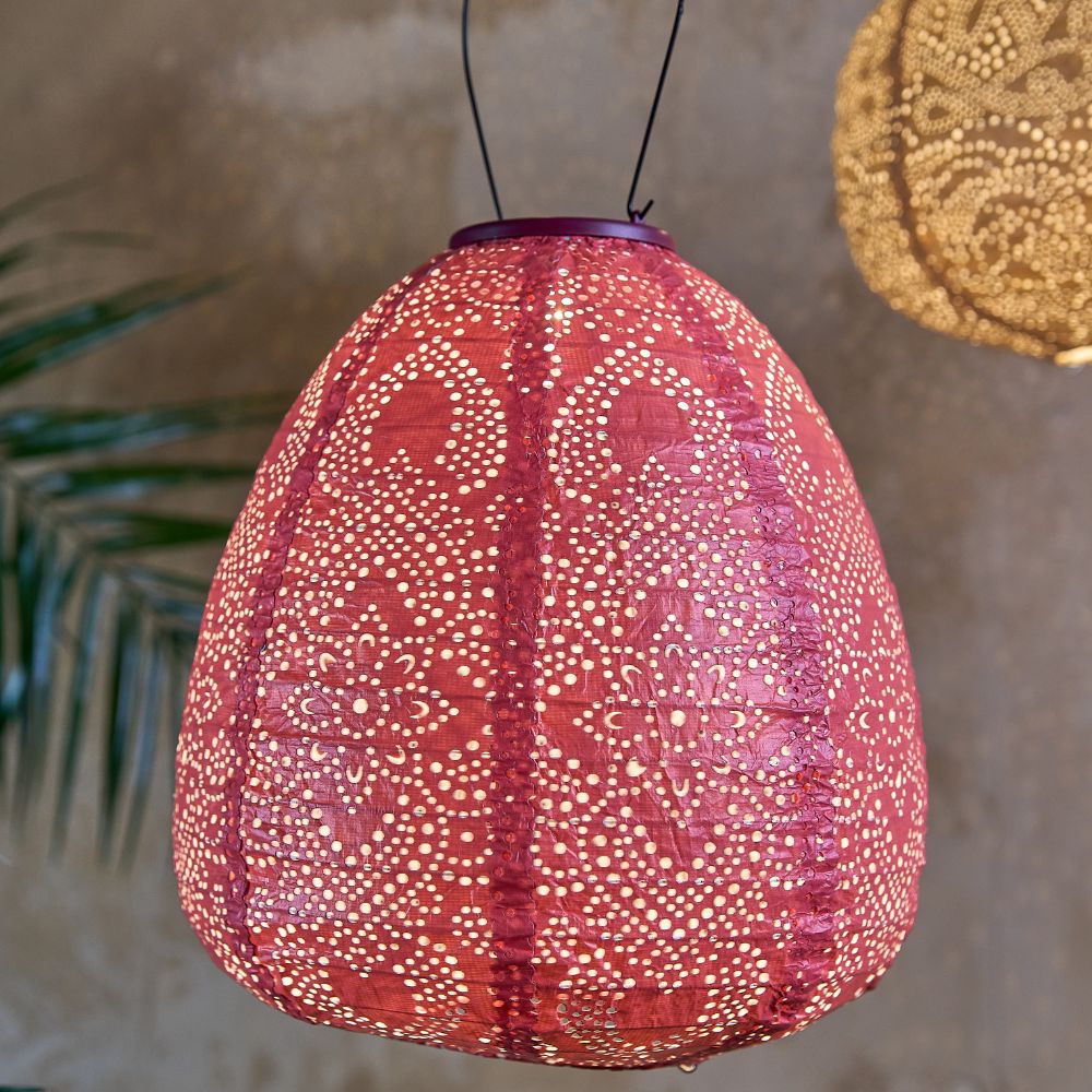 Lumina Outdoor LED Solar Lantern - Pastel Red Dome 26cm