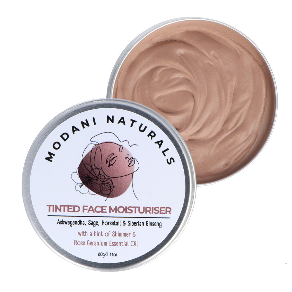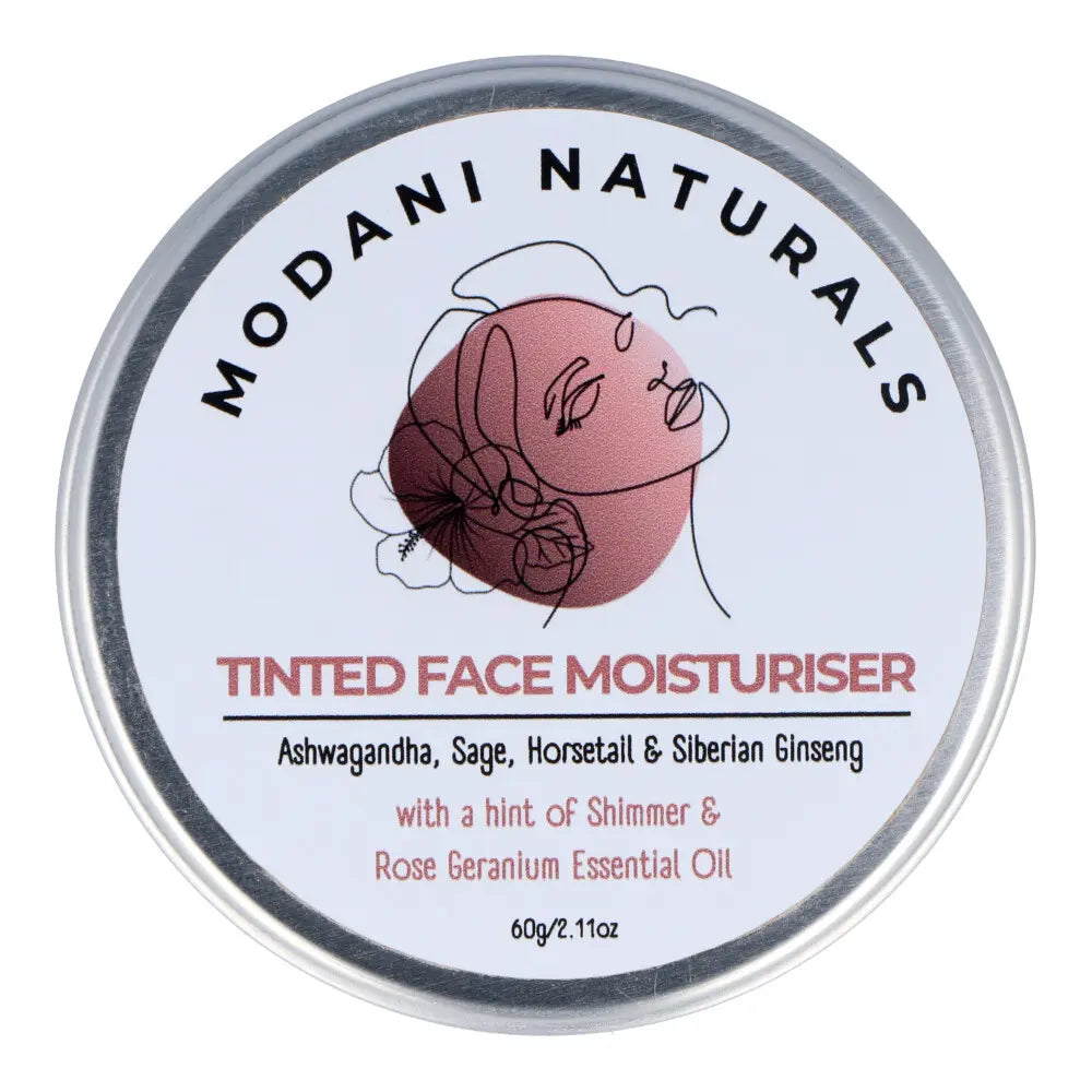 Introducing this Modani Naturals Tinted Face Moisturiser. Designed to support mature, aging & dry skin. Offers hydration and a touch of shimmer to reflect natural light, giving you a healthy, sun-kissed glow. Crafted with natural ingredients that are gentler and more nourishing for maturing skin and the environment. Size: 60g