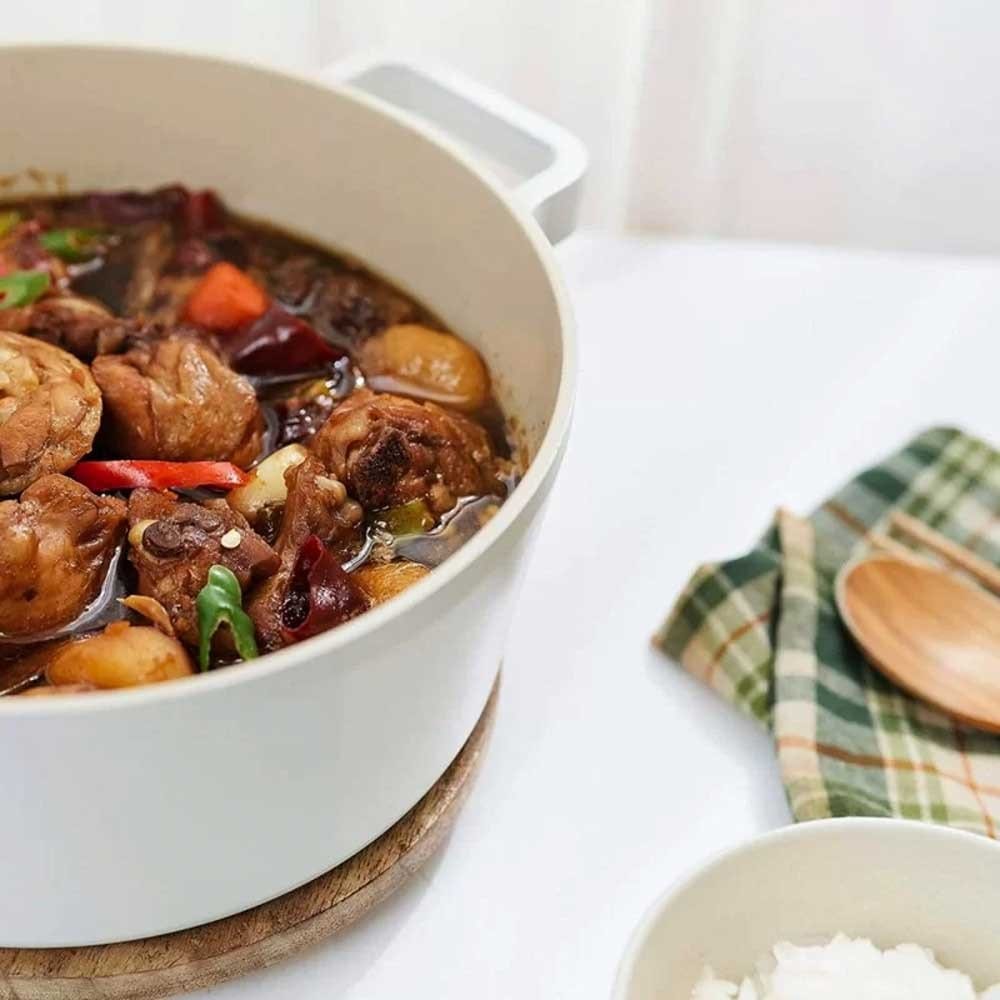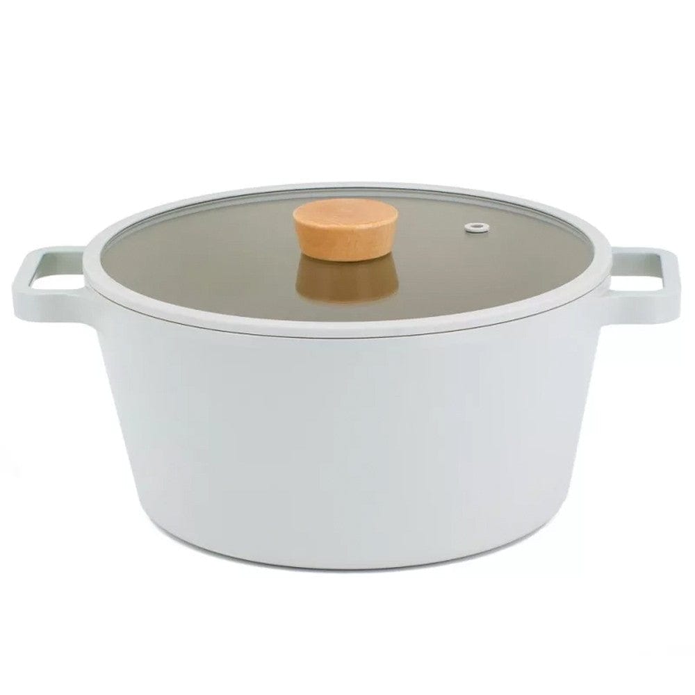 The Fika 24cm Stockpot by Neoflam will be a stylish addition to your cookware collection. Inspired by the Swedish term for coffee break, fika, this range is based on the importance of mealtimes, of stopping for rest and comfort. It's surprisingly lightweight body, excellent heat conduction, scratch resistant surface and timeless bone colour means this pan is sure to become a cookware staple.