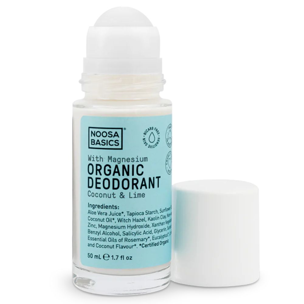Noosa Basics Bi-carb Free Roll On Deodorant - Coconut Lime. A vegan-friendly and palm oil free deodorant formulated for sensitive skin. Effectively neutralises underarm odour and absorbs moisture for 16 hours of protection. While these deodorants have antiperspirant qualities, we can't call it that because they don't use aluminium or parabens (ingredients required to be labelled an antiperspirant"!).  Coconut & Lime
