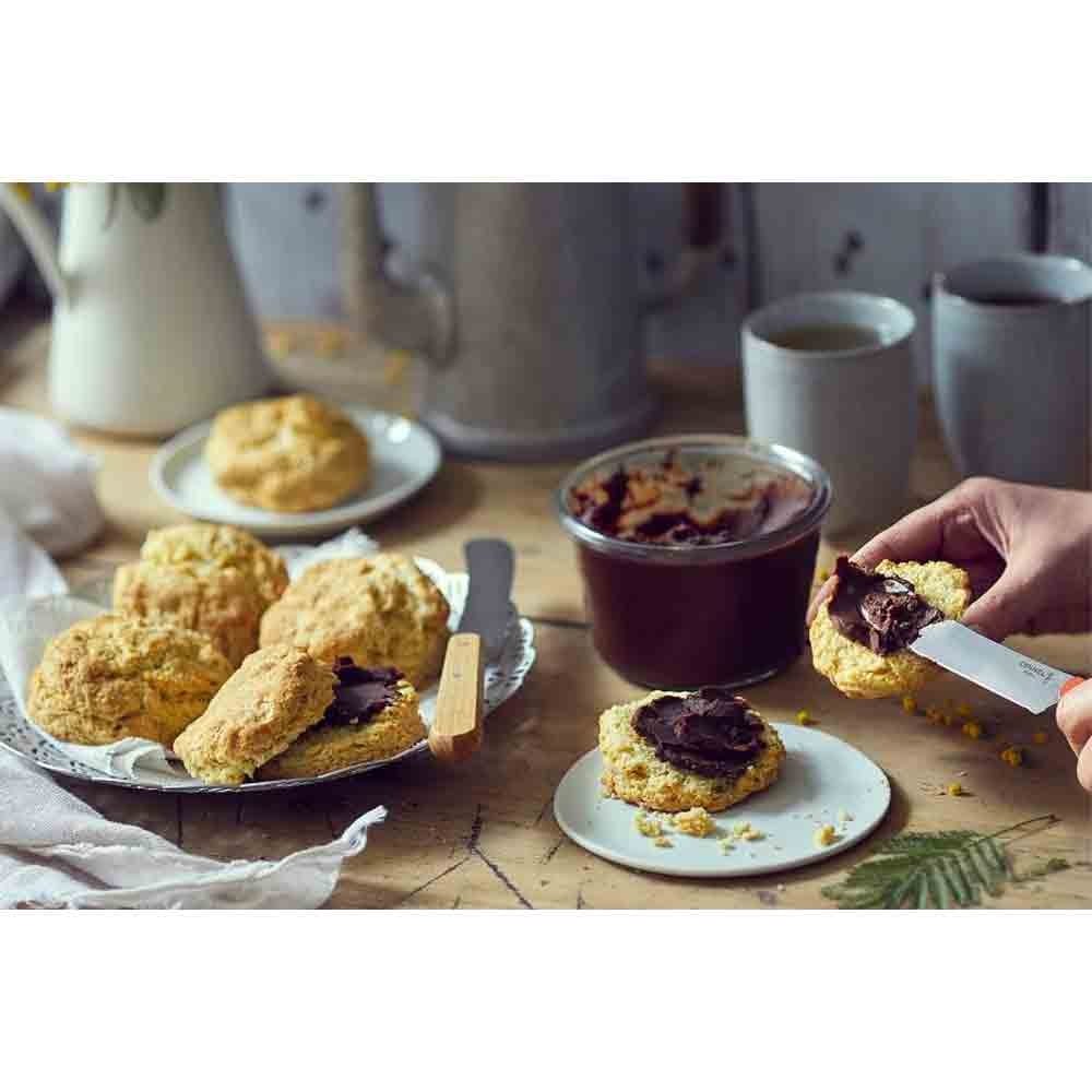 Opinel Stainless Steel Breakfast & Brunch Knife - Beech. A classic knife for cutting and spreading, ideal for breakfast and brunch settings. Featuring a long 11.5cm blade, with a 7.5cm serrated edge, it's prefect for reaching the bottom of your favourite jam jar, while also tackling tasks that need a sharper cut like pastries, poached eggs and sausage. Fitted with a beautiful French Beechwood handle.