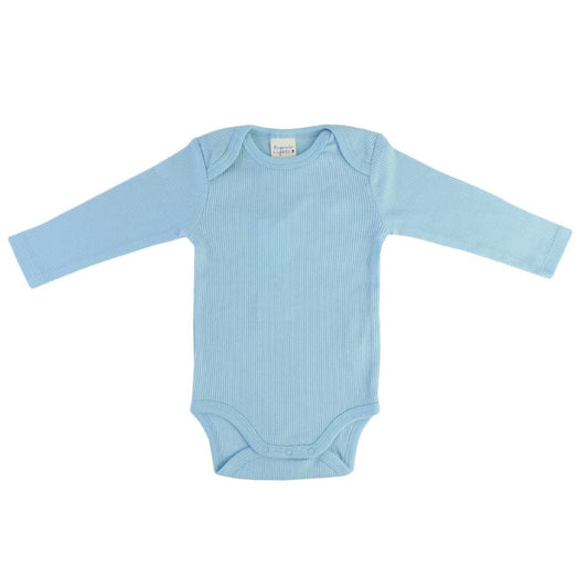 Organic Cotton Rib-Knit Baby Sleepsuit with Long Arms - Blue