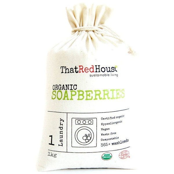 Organic Soap Berries (Soap Nuts) Natural Laundry Detergent 1kg. 'That Red House' certified organic Soapberries are the natural alternative to traditional fabric softeners and laundry detergents. Can also be used as a concentrated all purpose liquid soap. Harvested from the Sapindus Mukorossi tree, the shell contains high levels of 'saponin' that create suds in your machine. 1kg = approx. 365 wash loads.
