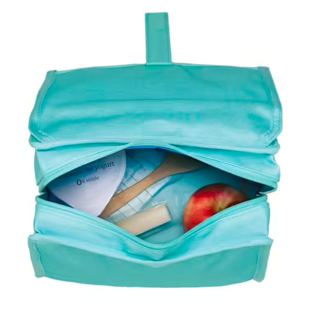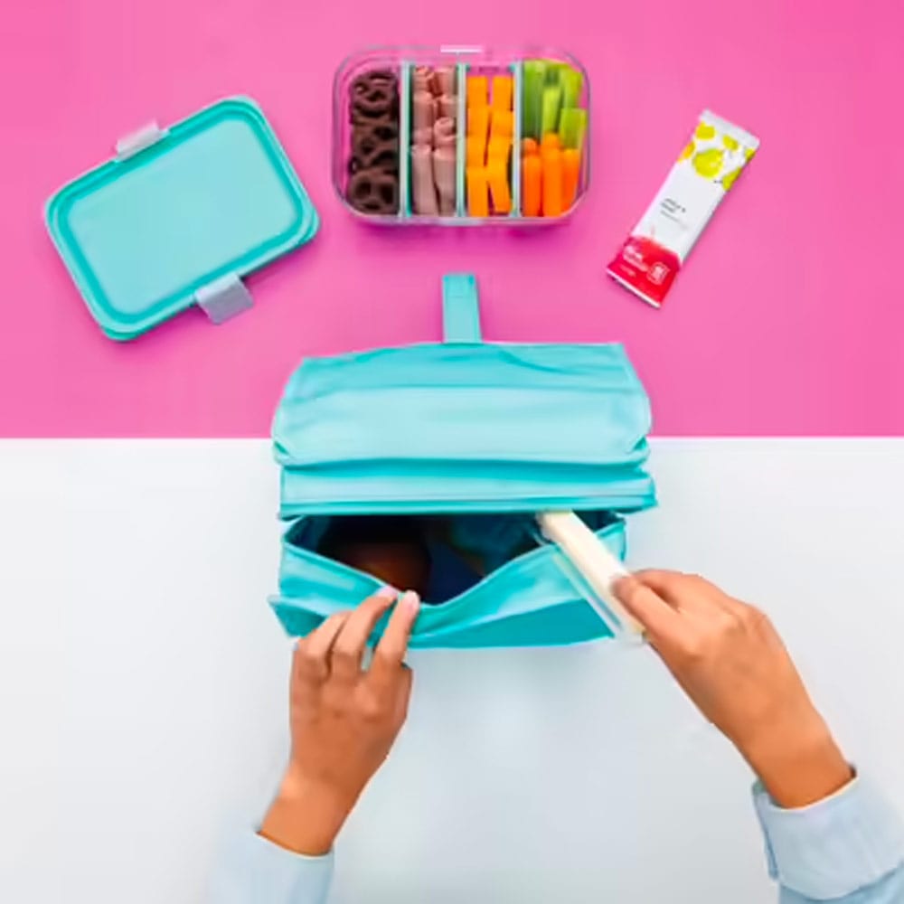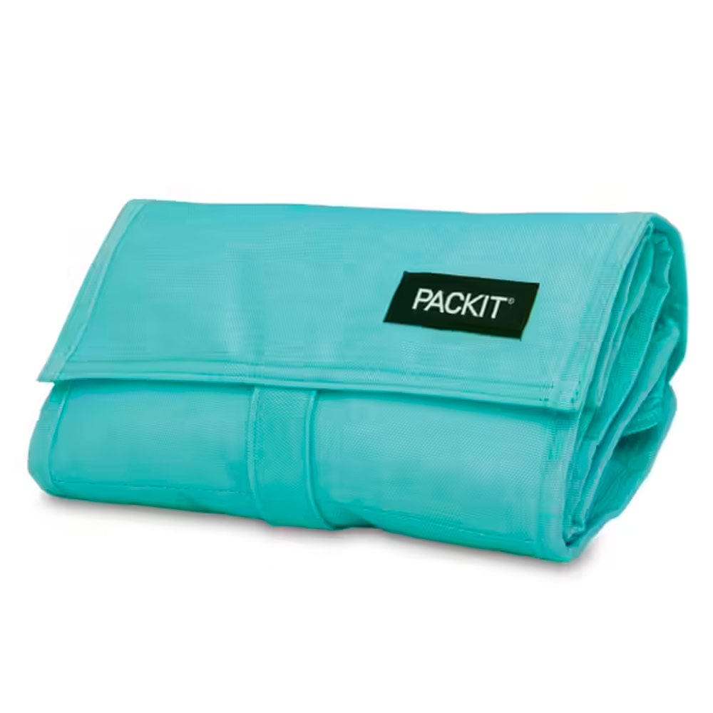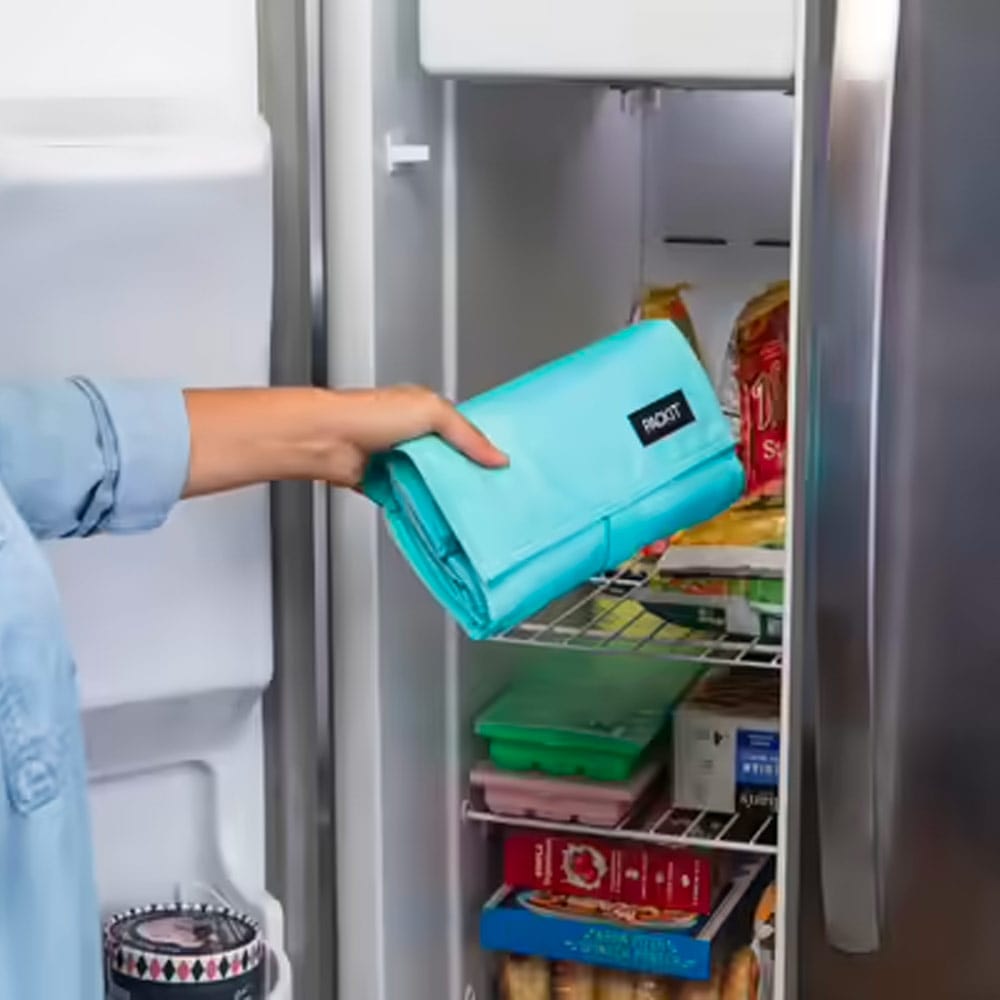 PackIt Freezable Lunch Bag - Mint is the original, bestselling reusable lunch bag made from food-safe, eco-friendly non-toxic materials is roomier in all the right places. Its expanded width and depth easily fits two of their Mod Lunch Bento or Mod Snack Bento containers with plenty of headroom for snacks. A repositioned buckle handle evenly distributes the weight so the front flap always stays in place. The smart design eliminates the need for separate ice packs or gel packs.