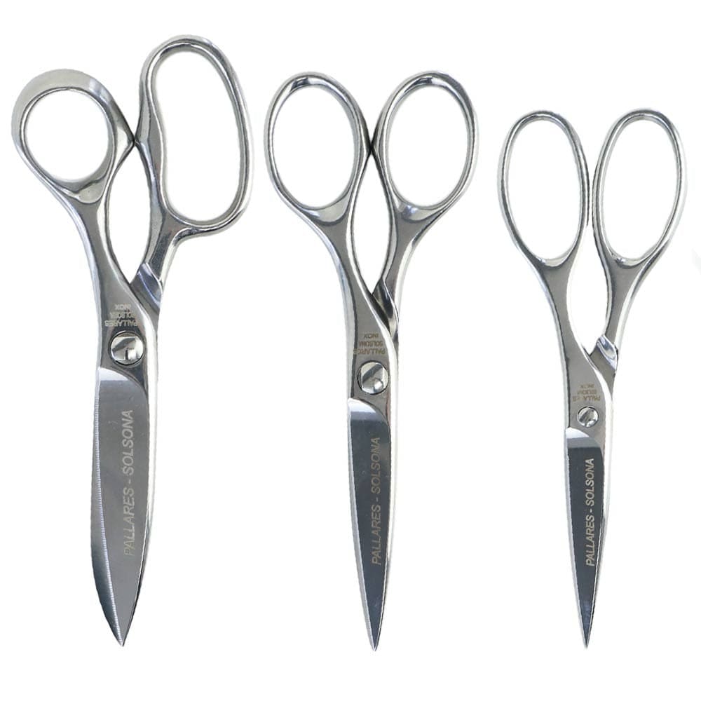 Pallarés Stainless Steel Kitchen Scissors - Set of 3. A set of three kitchen scissors in small, medium and large sizes. Designed to tackle any kitchen chore, these are sharp and strong, offering a quick cut while feeling like two knives working in sync. Made from high quality stainless steel and built to last a lifetime. Made by artisans in Spain.