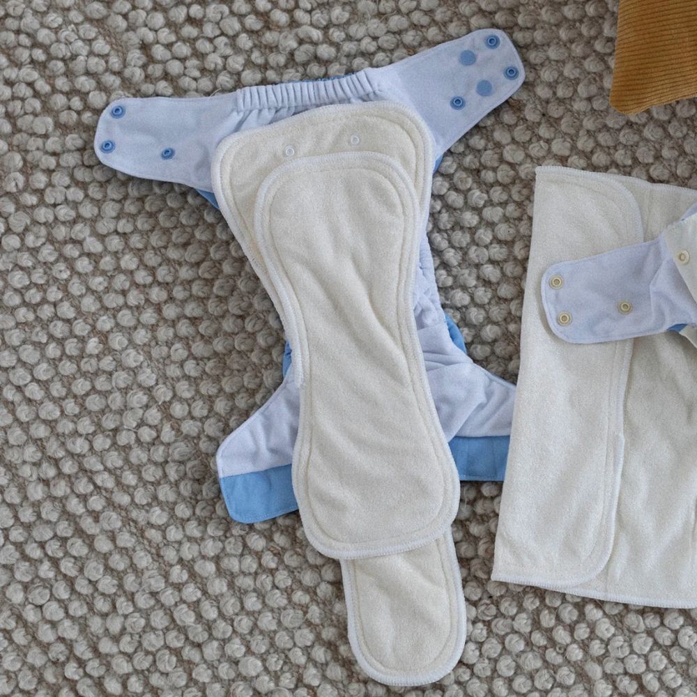 Cloth Nappy outer shell is made from Repreve® 100% Post-consumer Recycled Plastic from traceable sources and Oeko-Tex certified. The lining of the outer shell is made from 100% polyester. The inserts are made from premium Bamboo French Terry with 6 layers of absorbency.