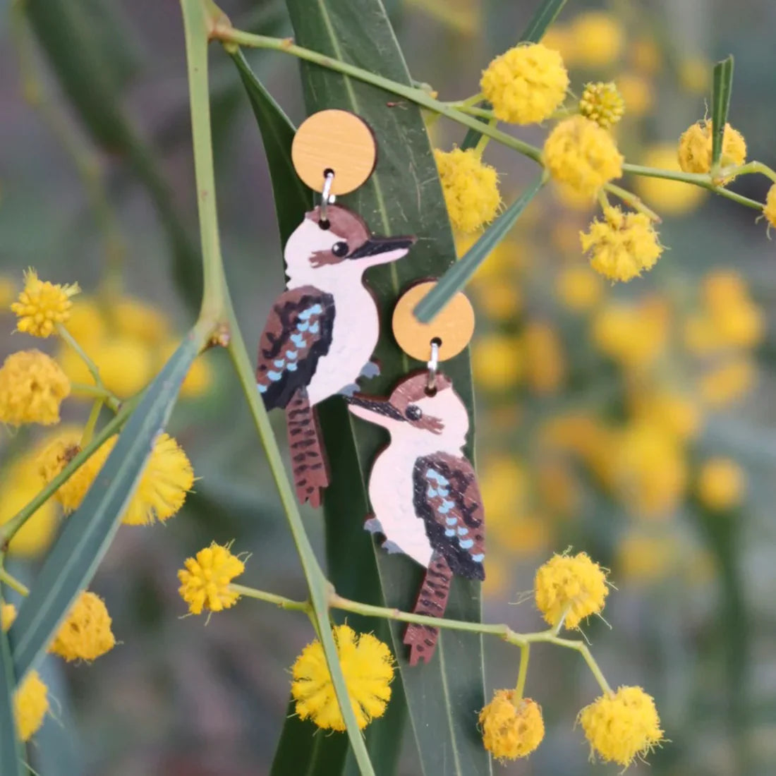 Compliments will be flying as you wear these beautiful, light weight Kookaburra earrings! The perfect gift for travellers seeking an Aussie souvenir, or a surprise gift for a friend (or even better... yourself!) All jewellery charms are printed on 3mm FSC Certified Birch Plywood and laser cut to shape. Earring posts are surgical stainless steel for sensitive ears.