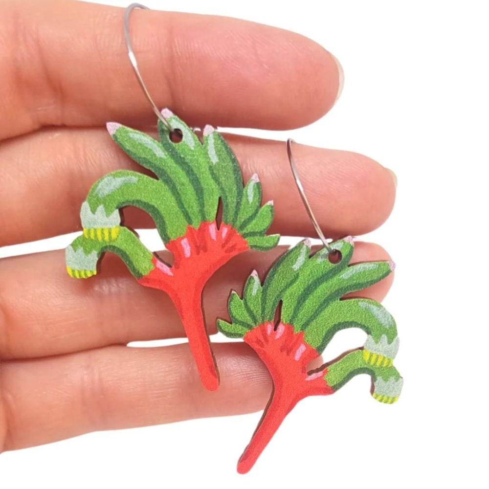 These floral Kangaroo Paw earrings by Pixie Nut and Co are one of a kind! Made from eco dyes, hoop pine and hung on stainless steel posts in Northern NSW. A fun and playful Australian themed gift idea!