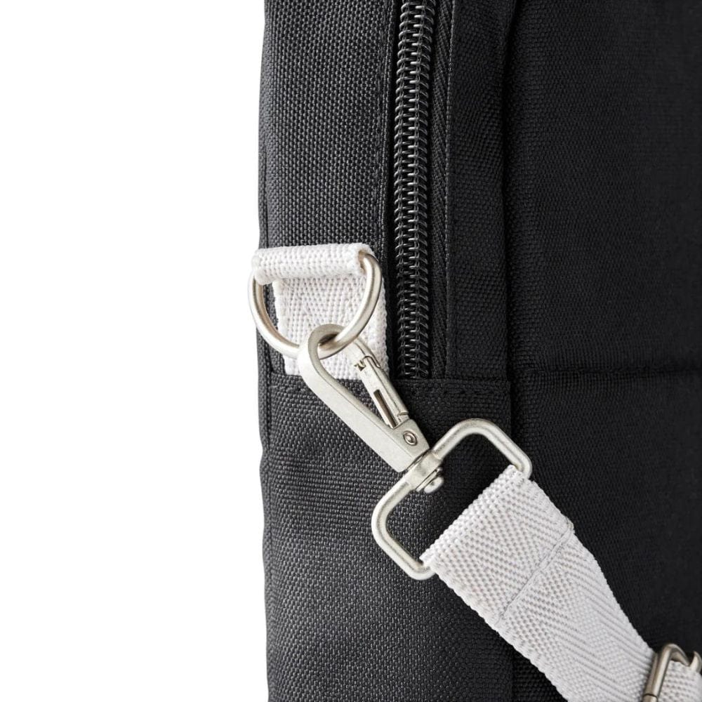 Detachable and adjustable carry strap allows for across-the-shoulder or handbag type transport.