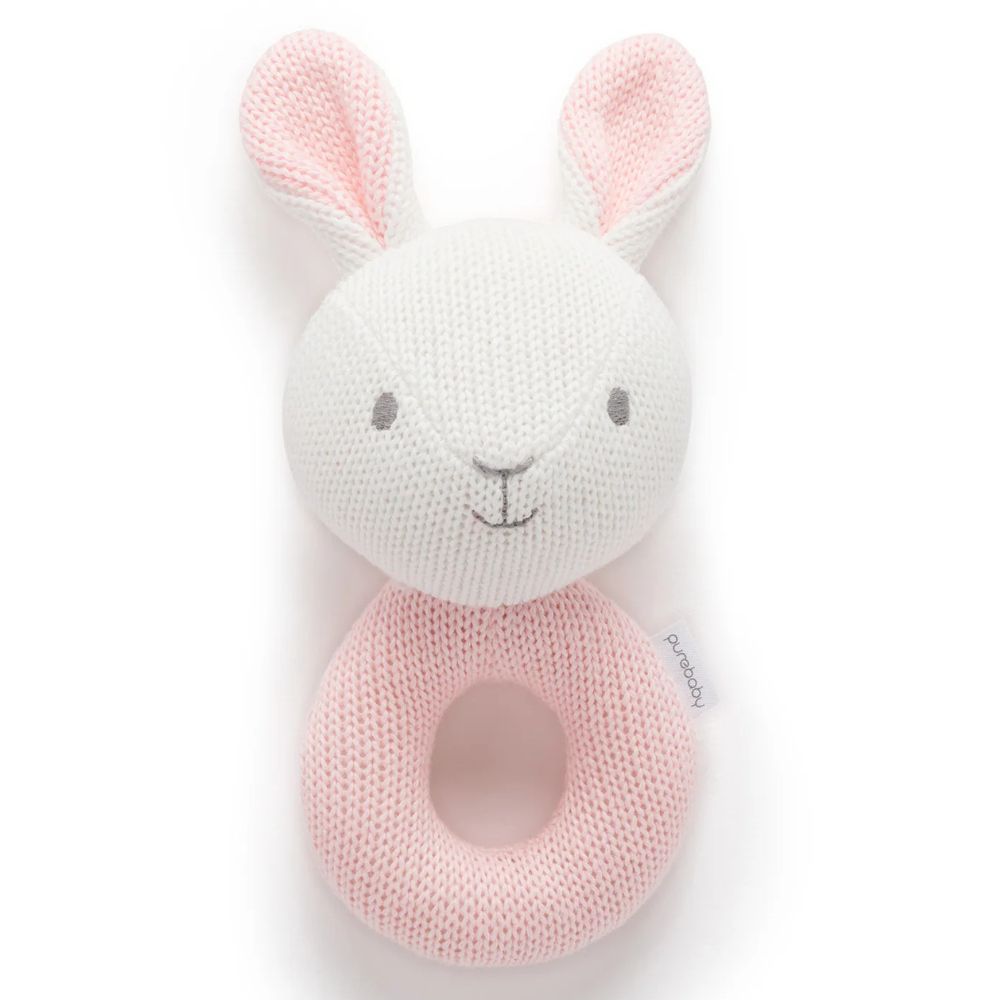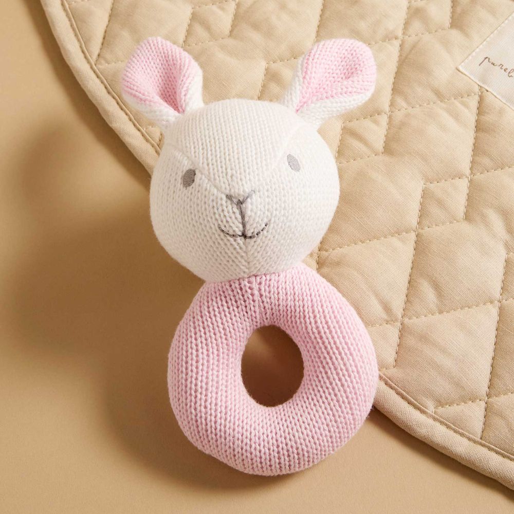 Purebaby's Knitted Rattle is sweet and engaging for those little hands to grab a hold of and wrap their fingers around. Perfect for assisting in the development of hand-eye coordination.