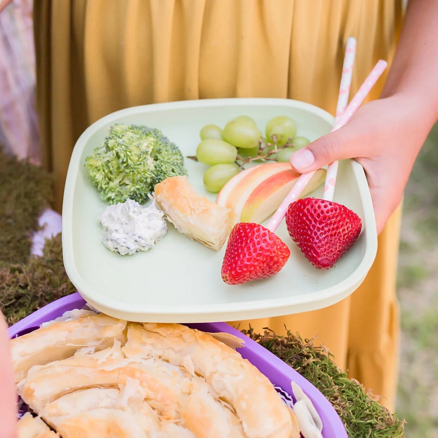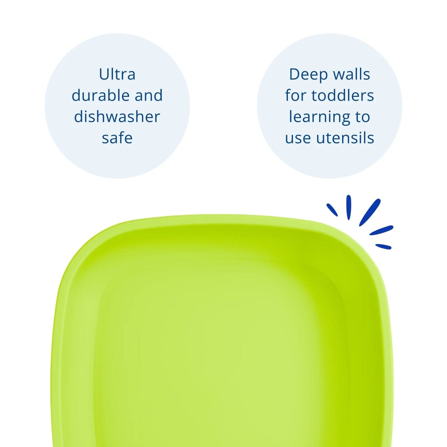 The flat plate's deep walls help toddlers learning to use utensils and help to lower the risk of mess.