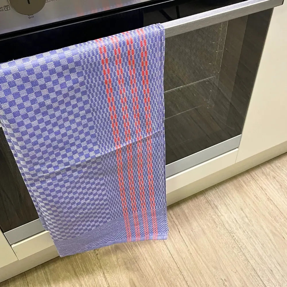Redecker + Kracht Oversized Tea Towel Blue Check/Red Stripes 50 x 100 cm