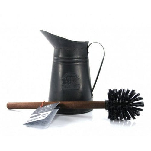 Redecker's high-quality toilet brush set comes with a beautiful embossed galvanized metal pitcher and toilet brush handle with nylon bristles.