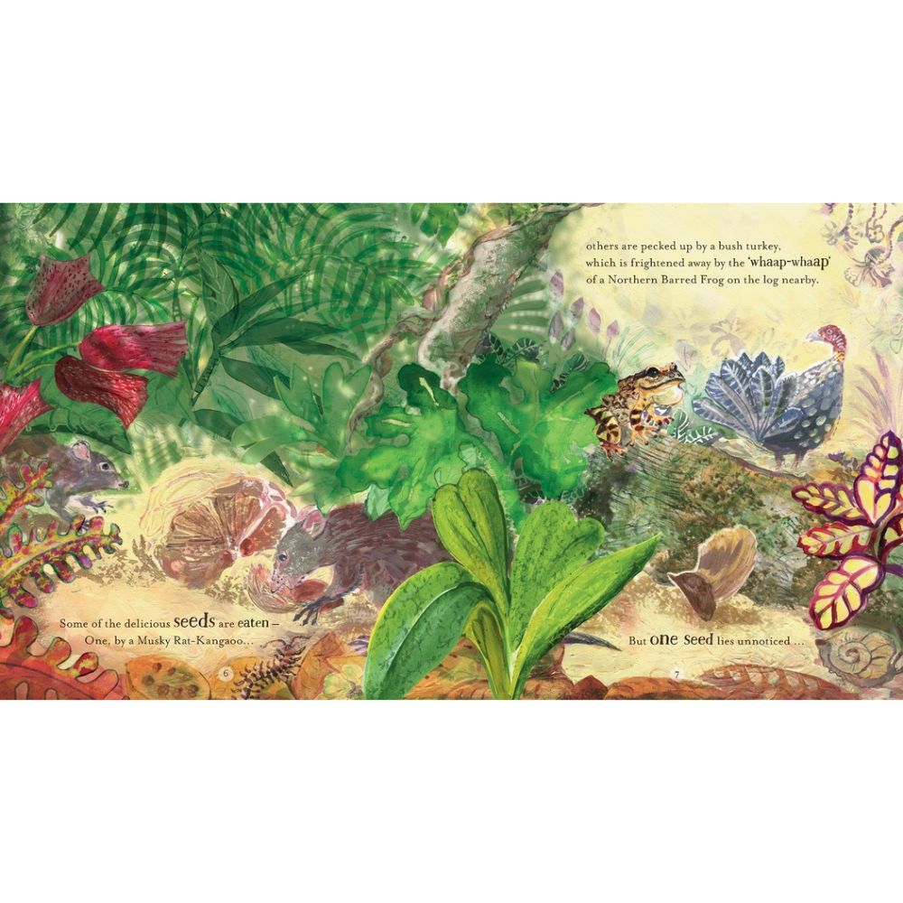 Discover the oldest rainforest in the world through Pamela Freeman's book Seed to Sky, beautifully illustrated by Liz Anelli. Follow the journey of a seed, small and round, as it grows and grows into the magnificent Bull Kauri Pine, watching generations of wildlife as they witness this marvel of nature.