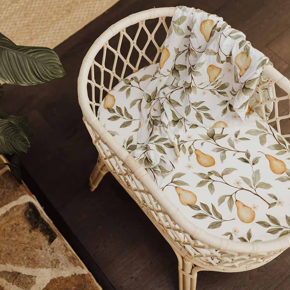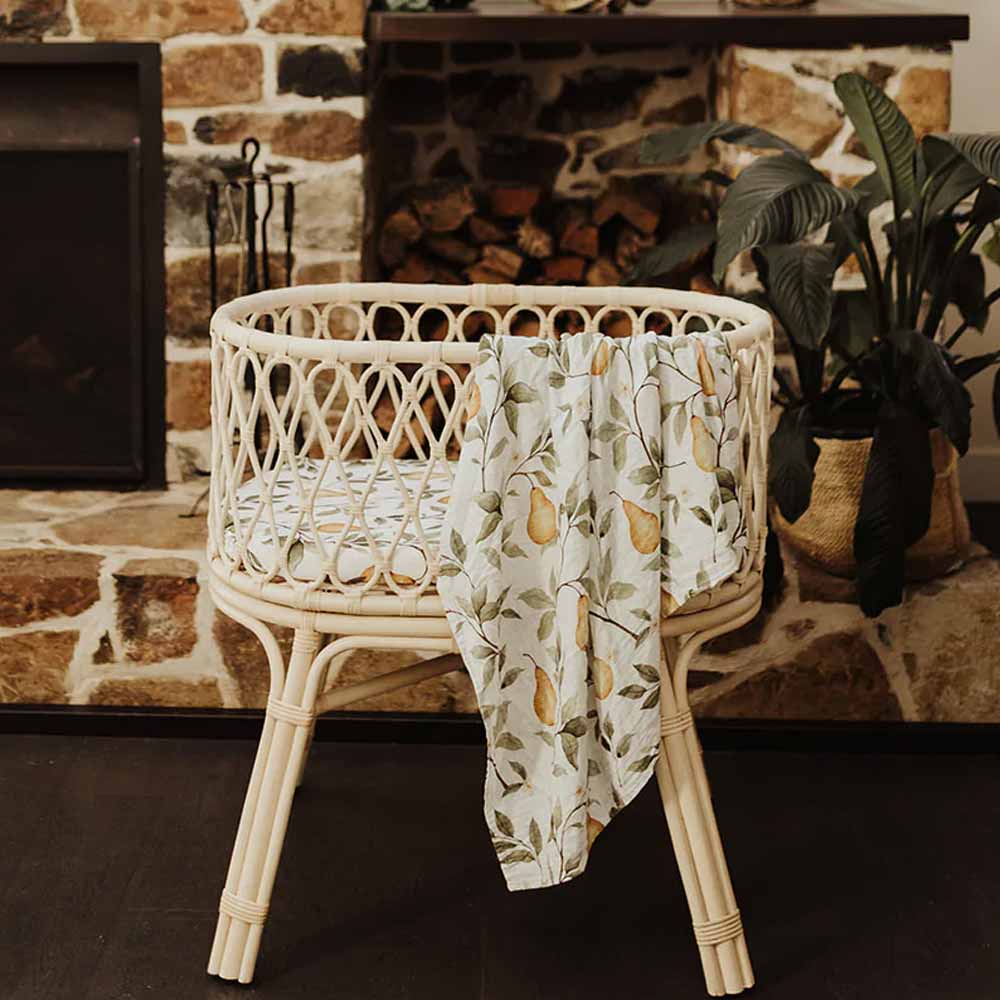 Snug as a Bub Co. Organic Swaddle - French Pear. Crafted from the finest organic cotton muslin, means this swaddle is an essential for bub + parents-to-be. Designed in Australia with a beautiful and unique design. The perfect gift idea for any baby shower or growing family.