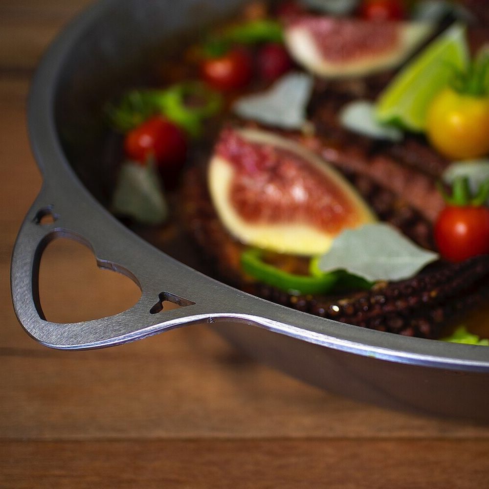 This pan is beautifully made and built to last. It heats evenly, holds temperature incredibly well, and the seasoned finish means food releases easily after a few uses. Perfect for everything from searing steaks to oven-baked dishes. The handle stays comfortable, and it feels solid without being overly heavy. Truly heirloom-quality Australian craftsmanship — worth every cent.