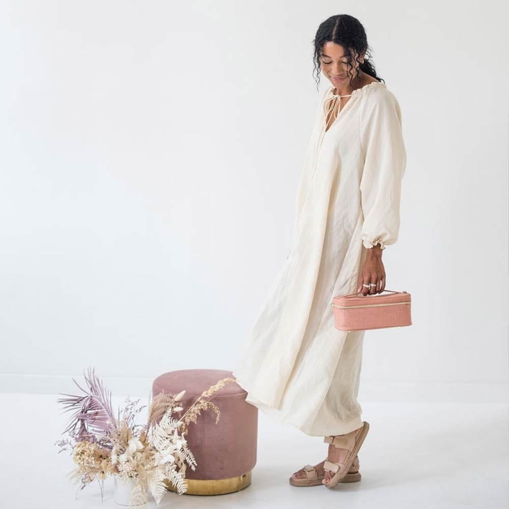 SoYoung Large Raw Linen Makeup Bag Beauty Poche - Muted Clay