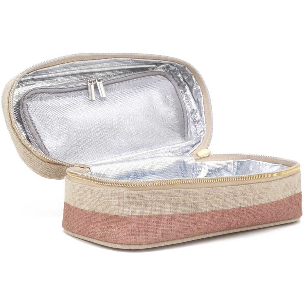 SoYoung Petite Raw Linen Makeup Bag Beauty Poche - Rose Gold Colour Block is a petite makeup and beauty bag, ideal for your minimalist beauty routine or makeup to take with you when you're on the go. The outer is made from a textured and durable cotton and linen fabric, and it's lined with an easy-to-clean insulated interior. Plus it features an internal breathable mesh pocket for smaller items and brushes. Finished with a clutch handle for easy transport.