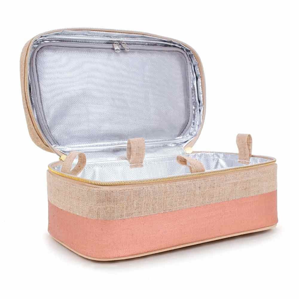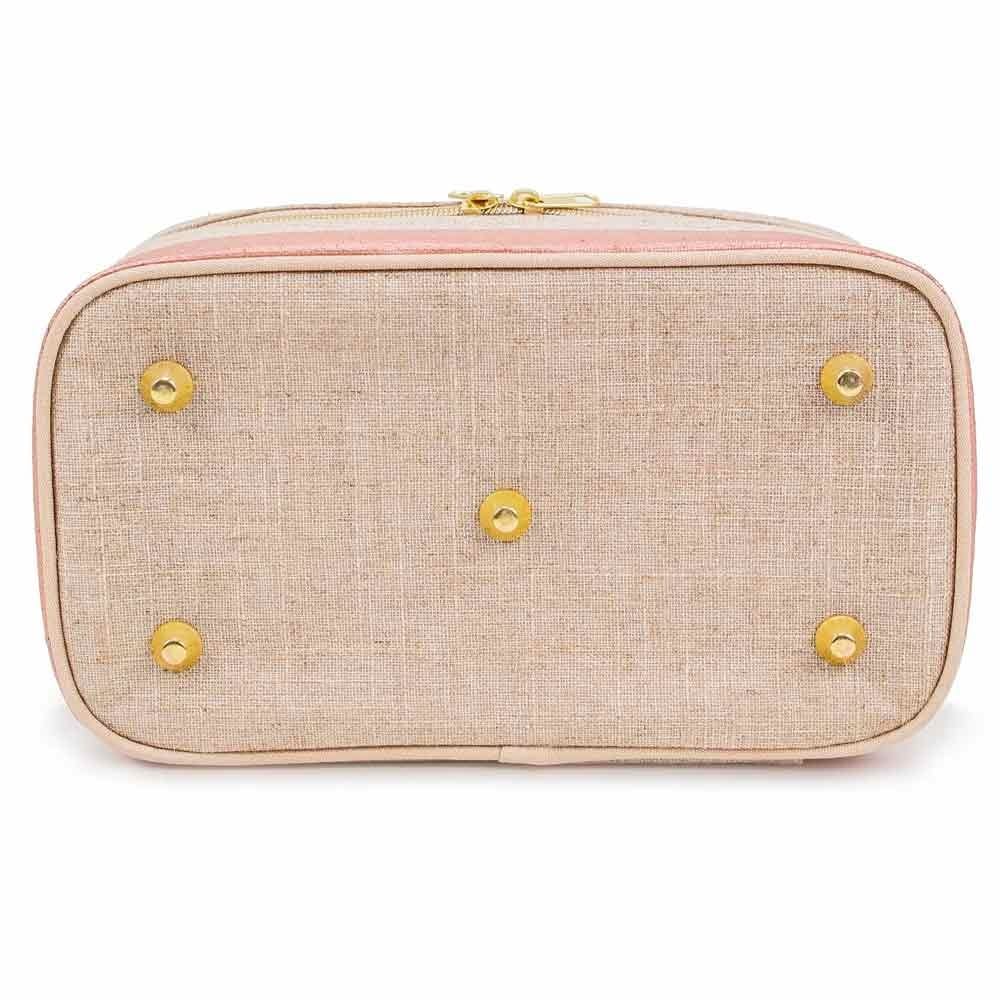 SoYoung Large Raw Linen Makeup Bag Beauty Poche - Rose Gold Colour Block