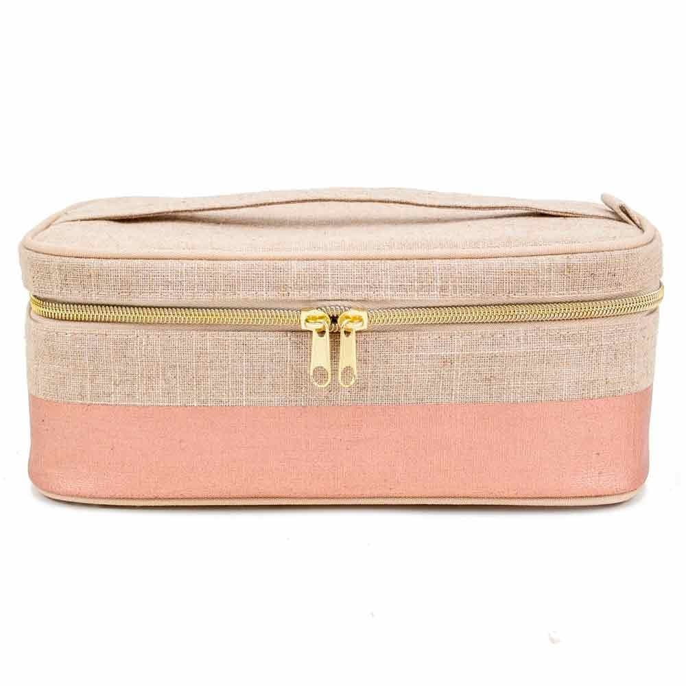 SoYoung Large Raw Linen Makeup Bag Beauty Poche - Rose Gold Colour Block